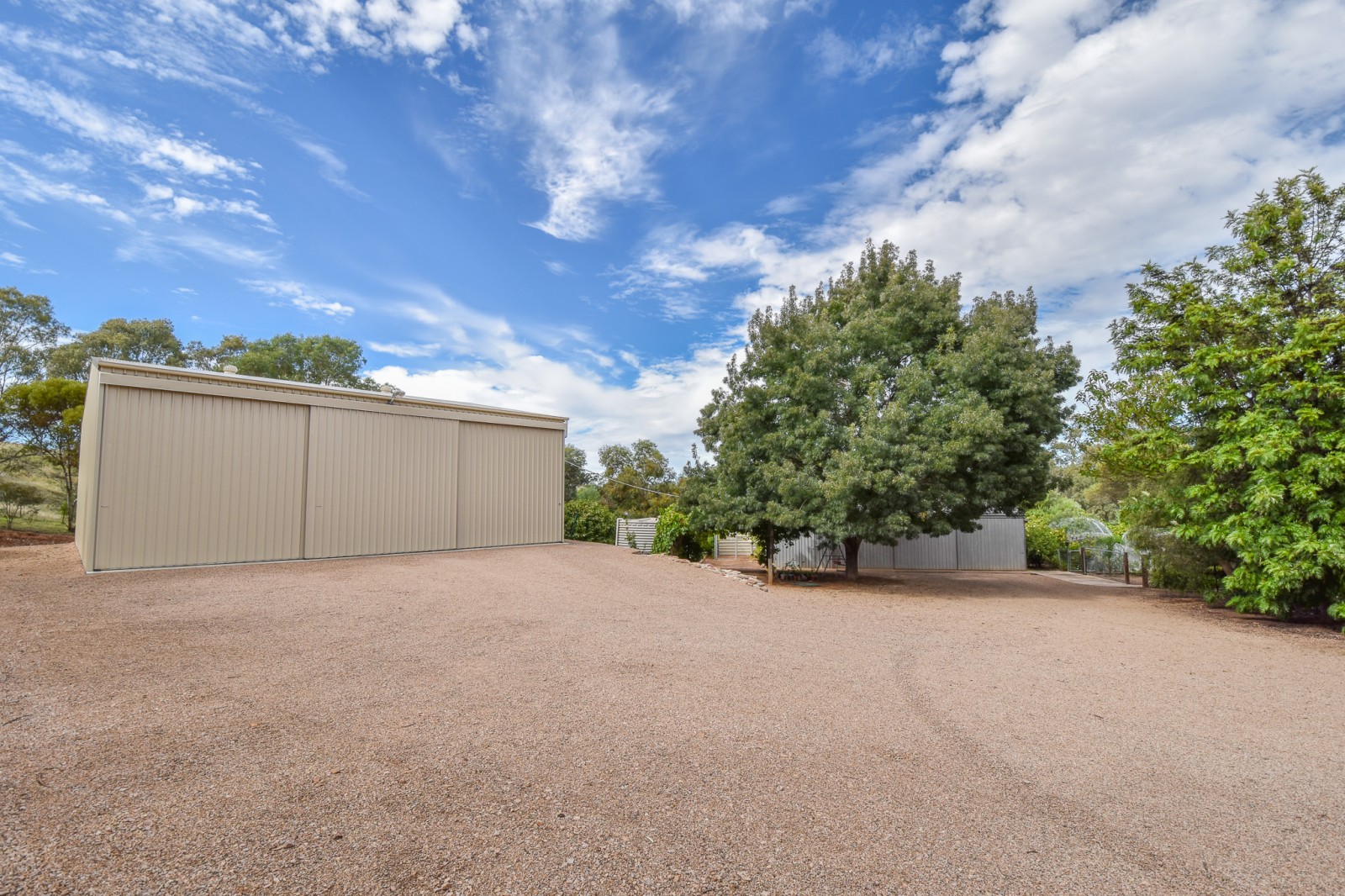 - The main shed measures approximately 14m x 12m* with 4m* clearance and includes a hoist, concrete floor, power, water, lighting and triple sliding doors, ideal for storing larger vehicles, a caravan or boat.