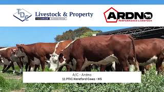Lot H5 - 11 *EU Accredited* Hereford Cows, PTIC to Ardno Performance Bulls. Weighed from 526-712kg to average 589.7kg Empty. Assessed as a line of 22, to be offered as a run out the gate. They are extremely well bred cows with a lifetime of production ahead. No money has been spared on genetics in this herd, going back to the "Ardno Performance Livestock" and AI Genetics. Represents a great opportunity for anyone starting off or addition to anyone's herd.