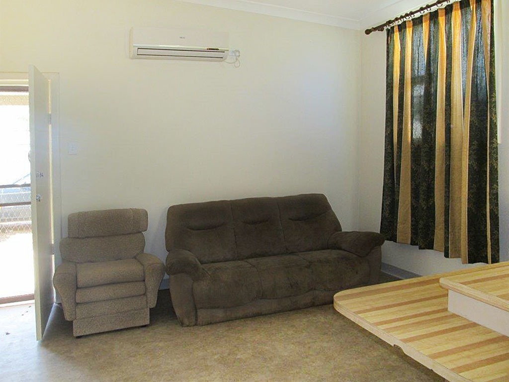 The modern unit has a comfortable kitchen and living area, a large bedroom and combined laundry/bathroom.