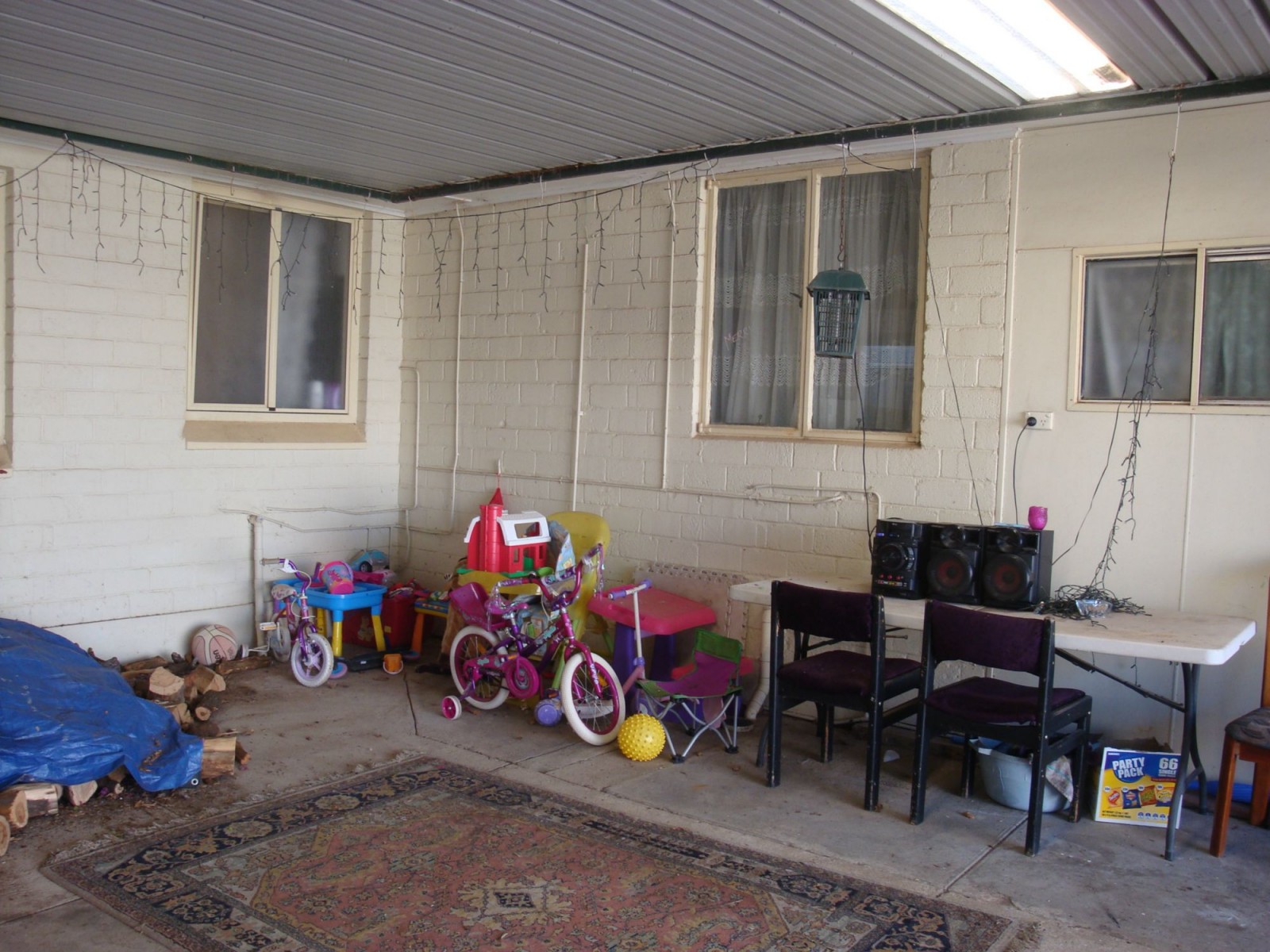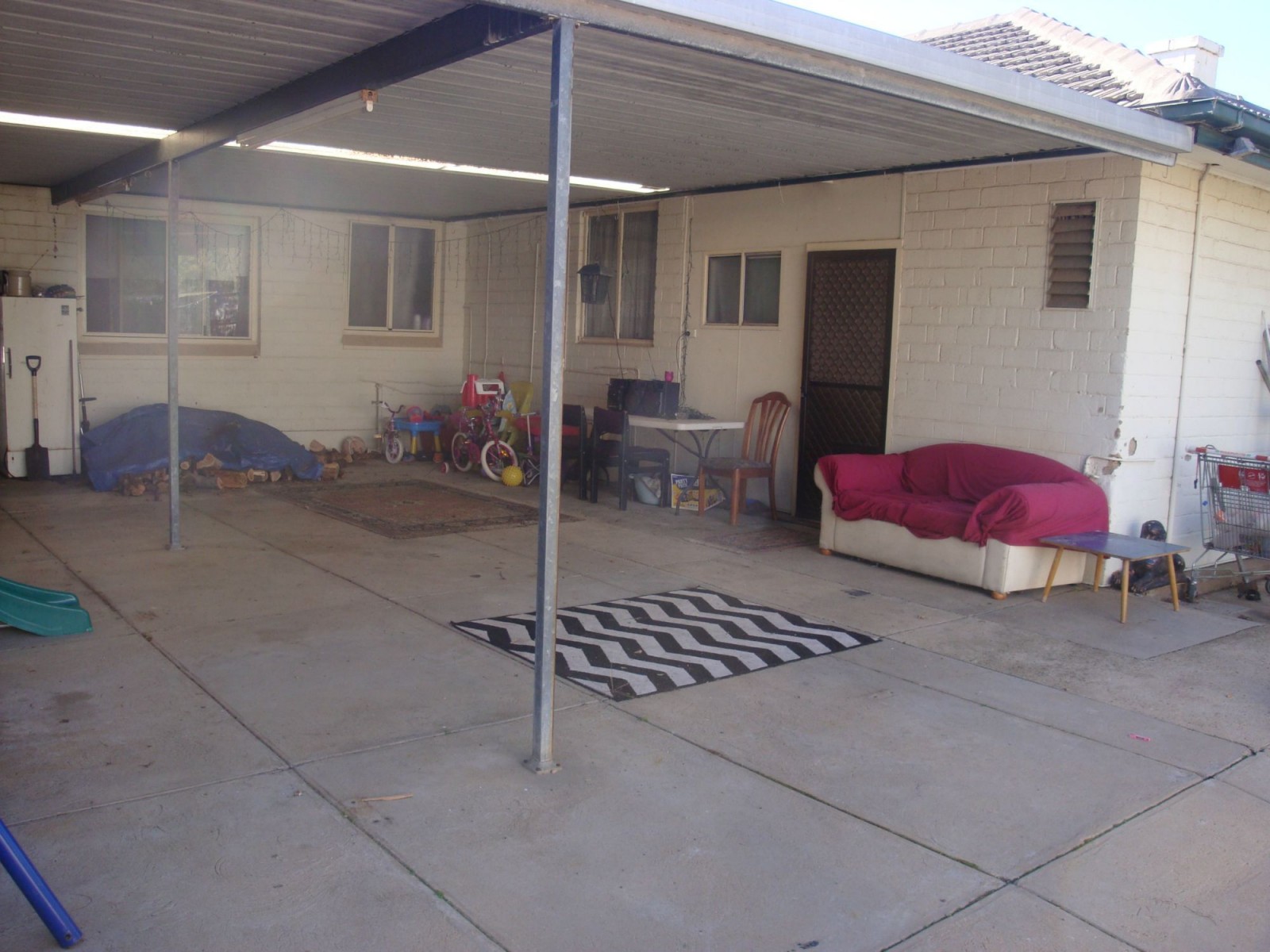 The lounge has a combustion heater and there is ducted evaporative airconditioner. Other features are polished floor boards and tiled bathroom, 2 toilets and more. There is a large carport and outdoor entertaining area, double garage with power and concrete. Currently tenanted on periodic tenancy and well worth a look