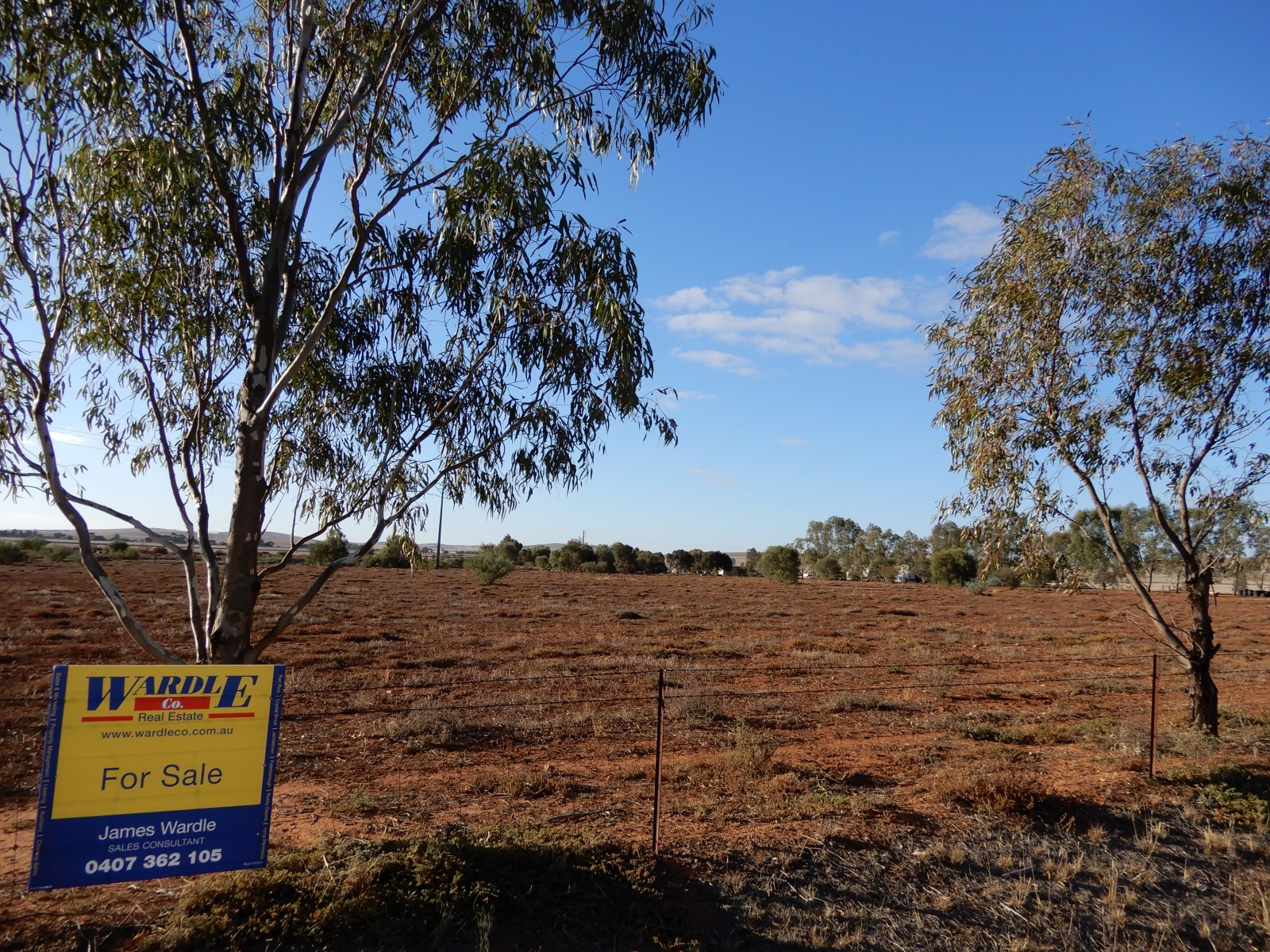 Lot 1 of 2.5 Ha (6.17 acres) approx of flat land, lovely gums along the road boundary, mains water connected and within only 600m from the Main Street. Available for $69,000.