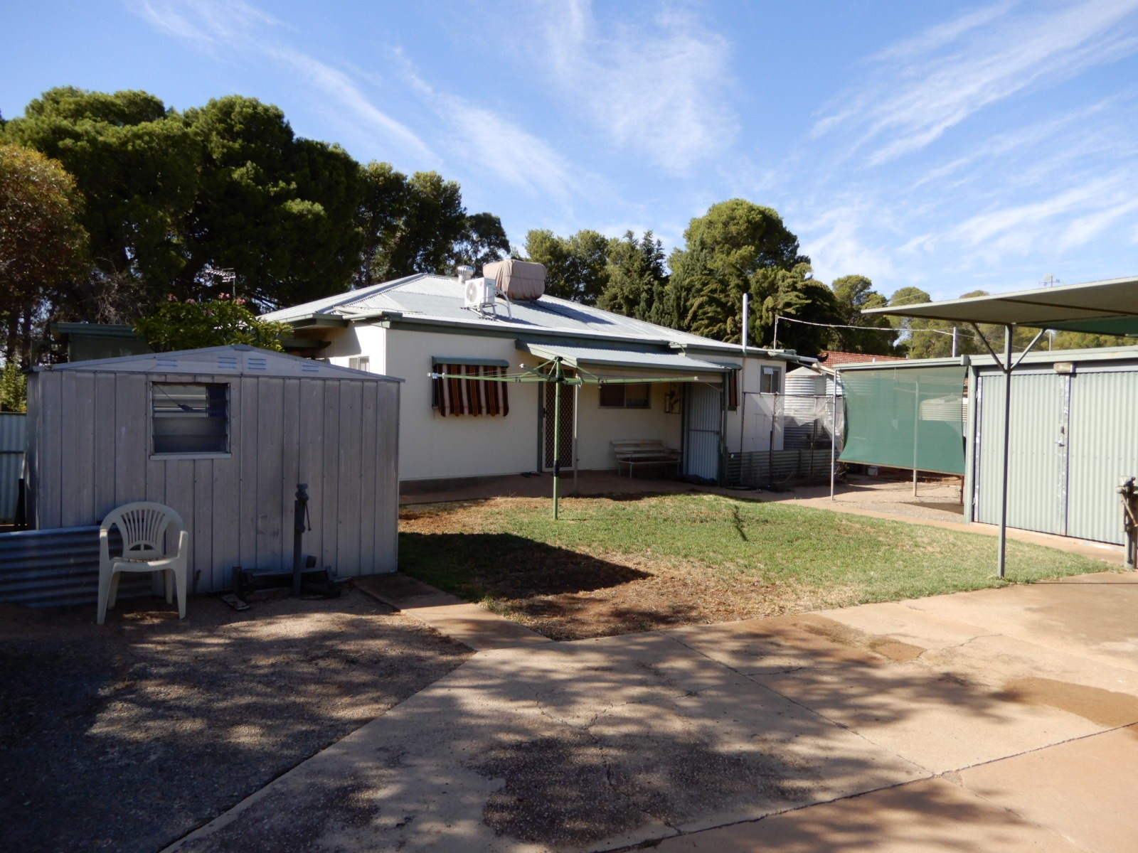 Located on a corner allotment is this generous size three bedroom home with ceiling fans and an additional office/storage room.Comfortable lounge area, renovated bathroom with shower over the bath and also a second shower with easy access. Storage cupboards, spacious entrance hall leading to the laundry/toilet.Ducted evaporative a/c, reverse cycle s/s a/c, tool sheds/work shop/two car garage/two car carport and BBQ area.