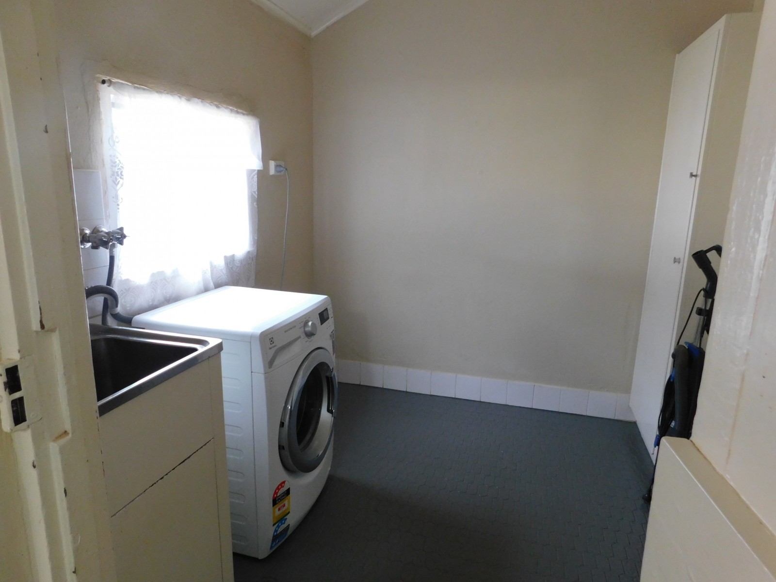 - Walk through the sleepout/lobby to toilet and tiled laundry
