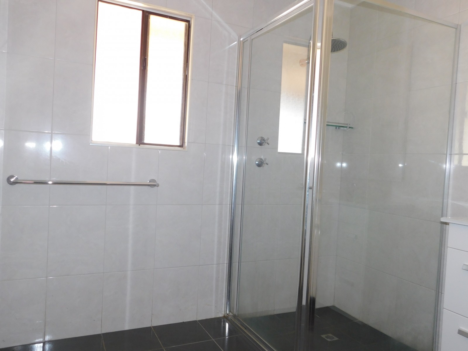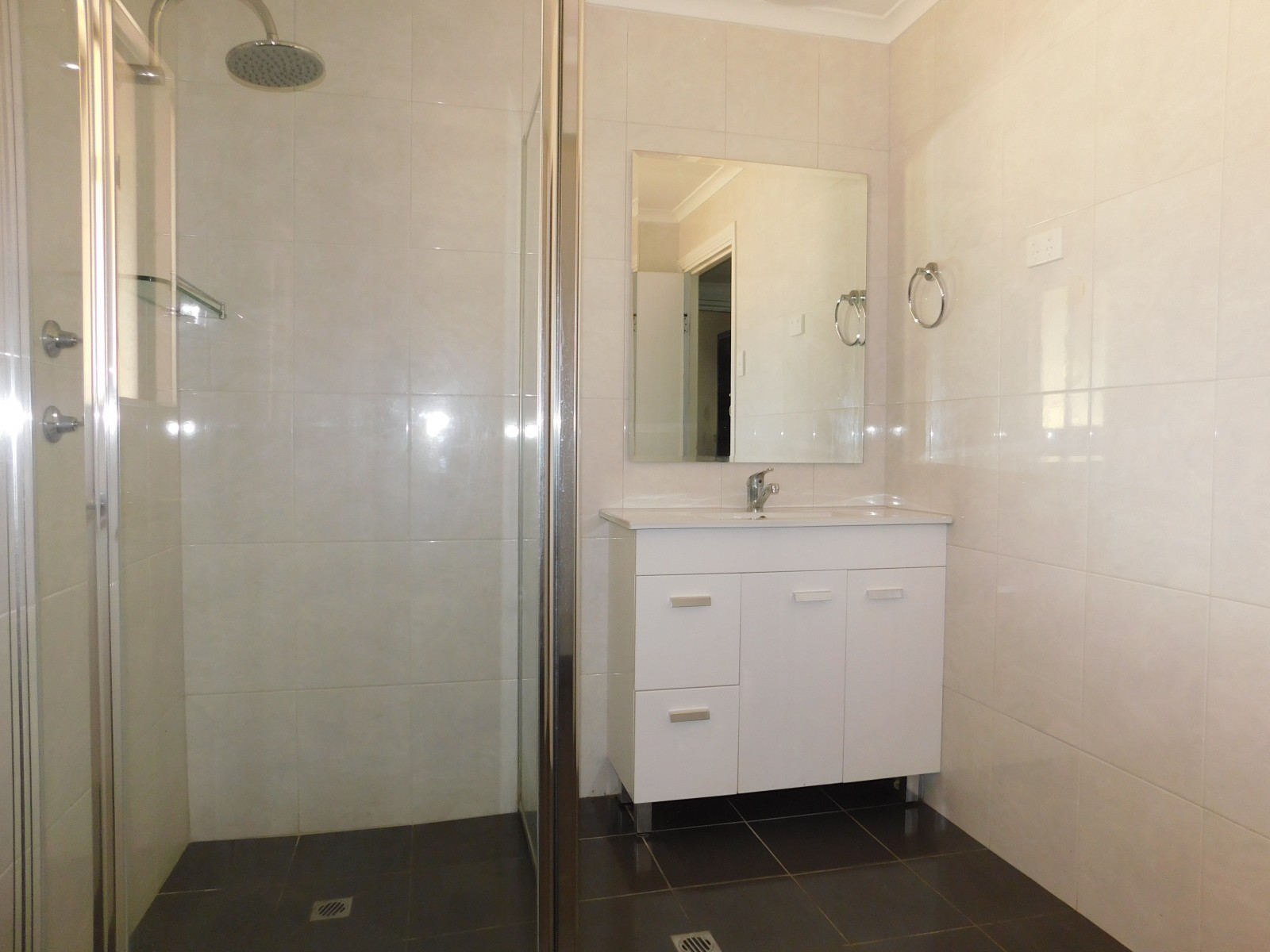 - Upgraded bathroom with modern vanity, alcove and tiling