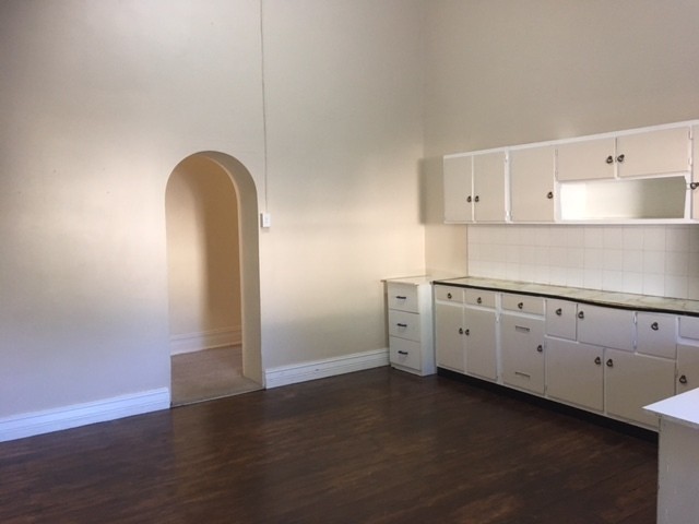 - Kitchen with ample cupboard storage, stainless steel sink with freestanding gas oven and cooktop