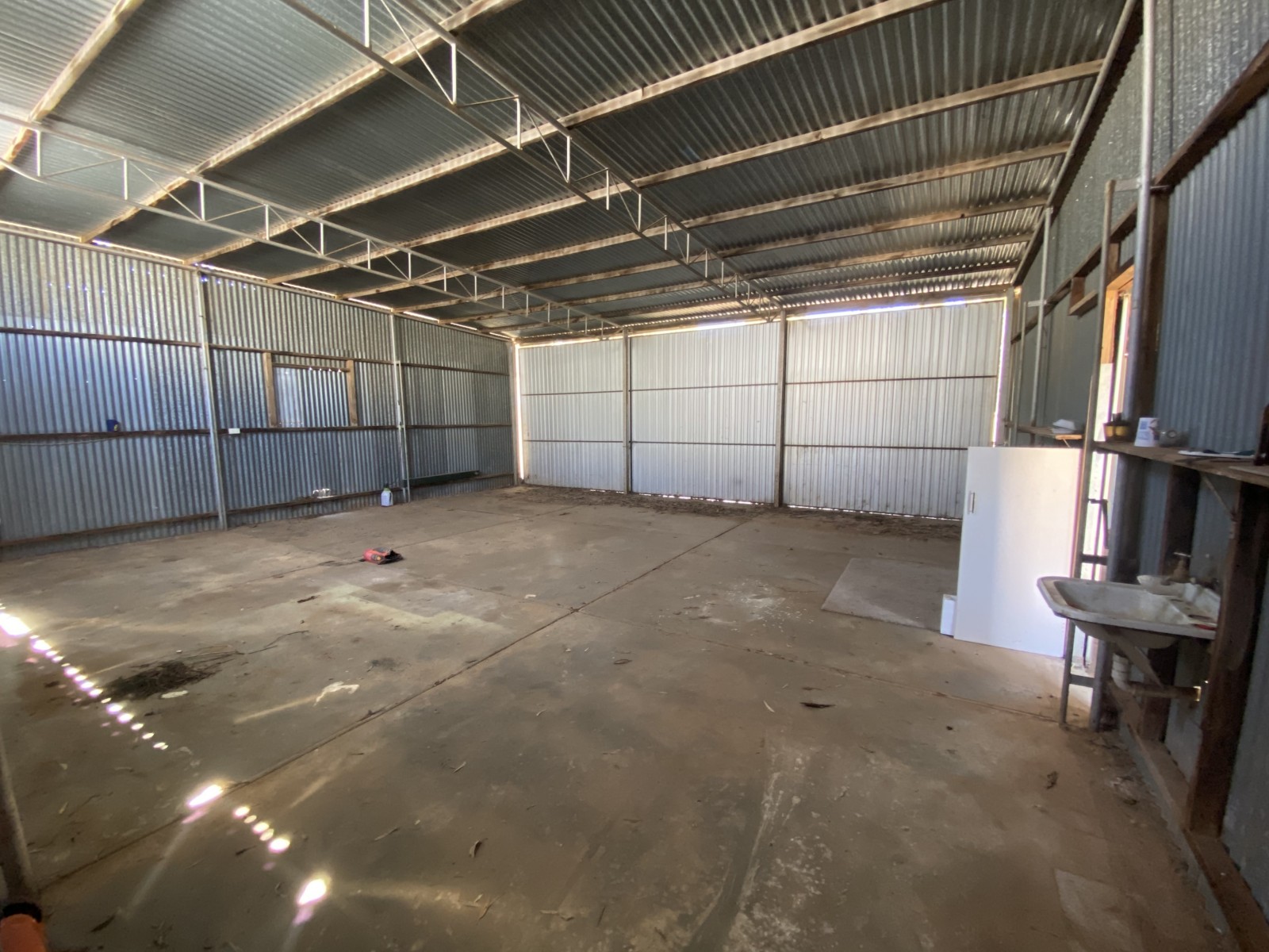 - Rear shedding includes a service pit, power and water and concrete floor with full drive thru access via sliding doors at front and rear of sheds