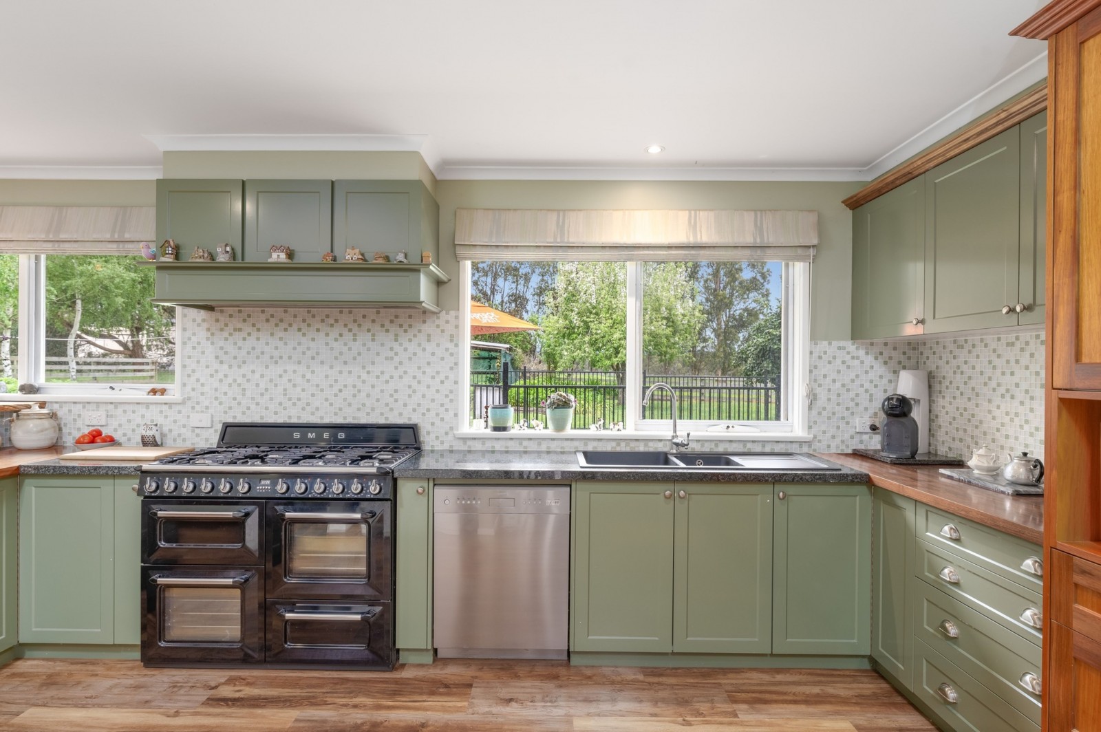 - North facing family residence featuring a spacious open plan living/dining/kitchen incorporating an 8 burner Smeg stove, wood heater and two split system air-conditioning units