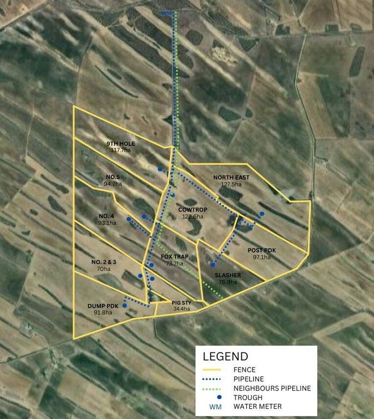 - Water is supplied via an SA Water mains connection and delivered to all paddocks via either a 40mm or 32mm poly pipe which has been renewed in recent years.