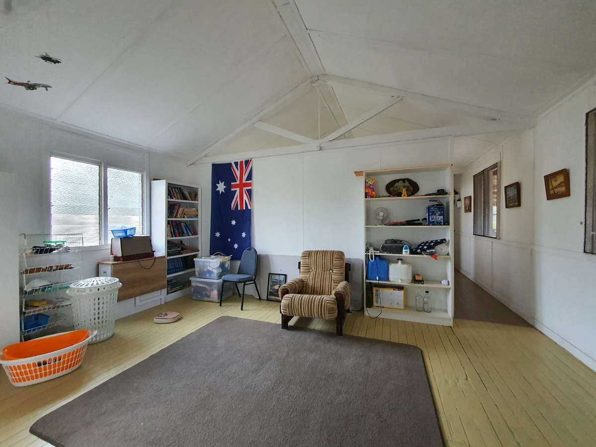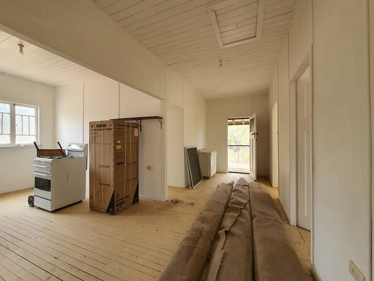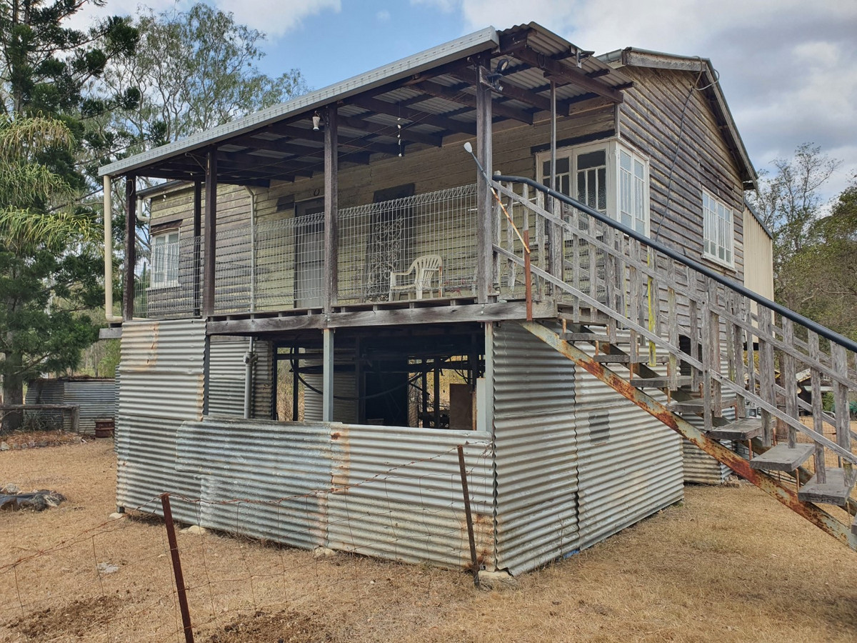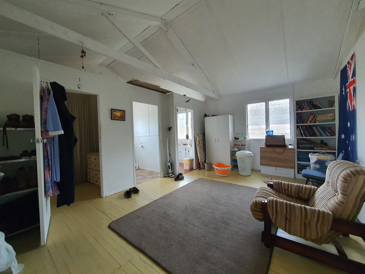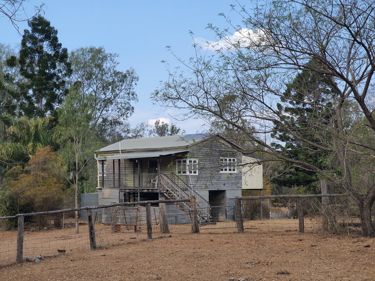 * Main residence is high-set with 3 or 4 bedrooms, 2 separate living areas, kitchen with wood stove + gas cooker, bathroom with laundry and separate toilet, verandah almost entire length of the house captures stunning breezes through summer & morning sun in winter. There is also a 3 bay Colourbond shed at the rear of the property and direct level access to the back of the house (without walking up stairs)