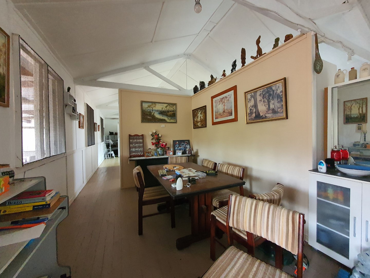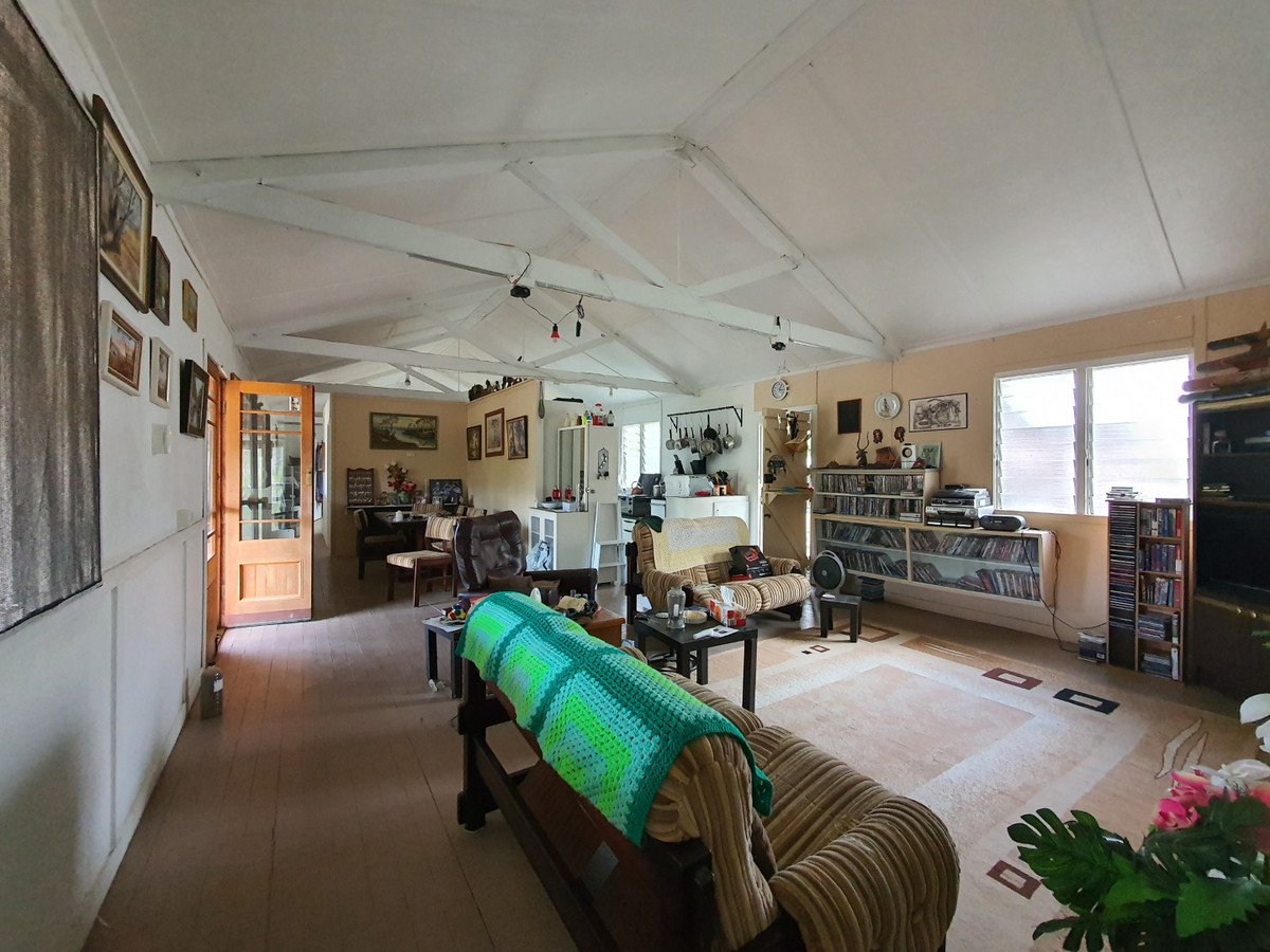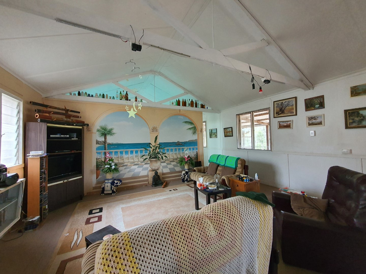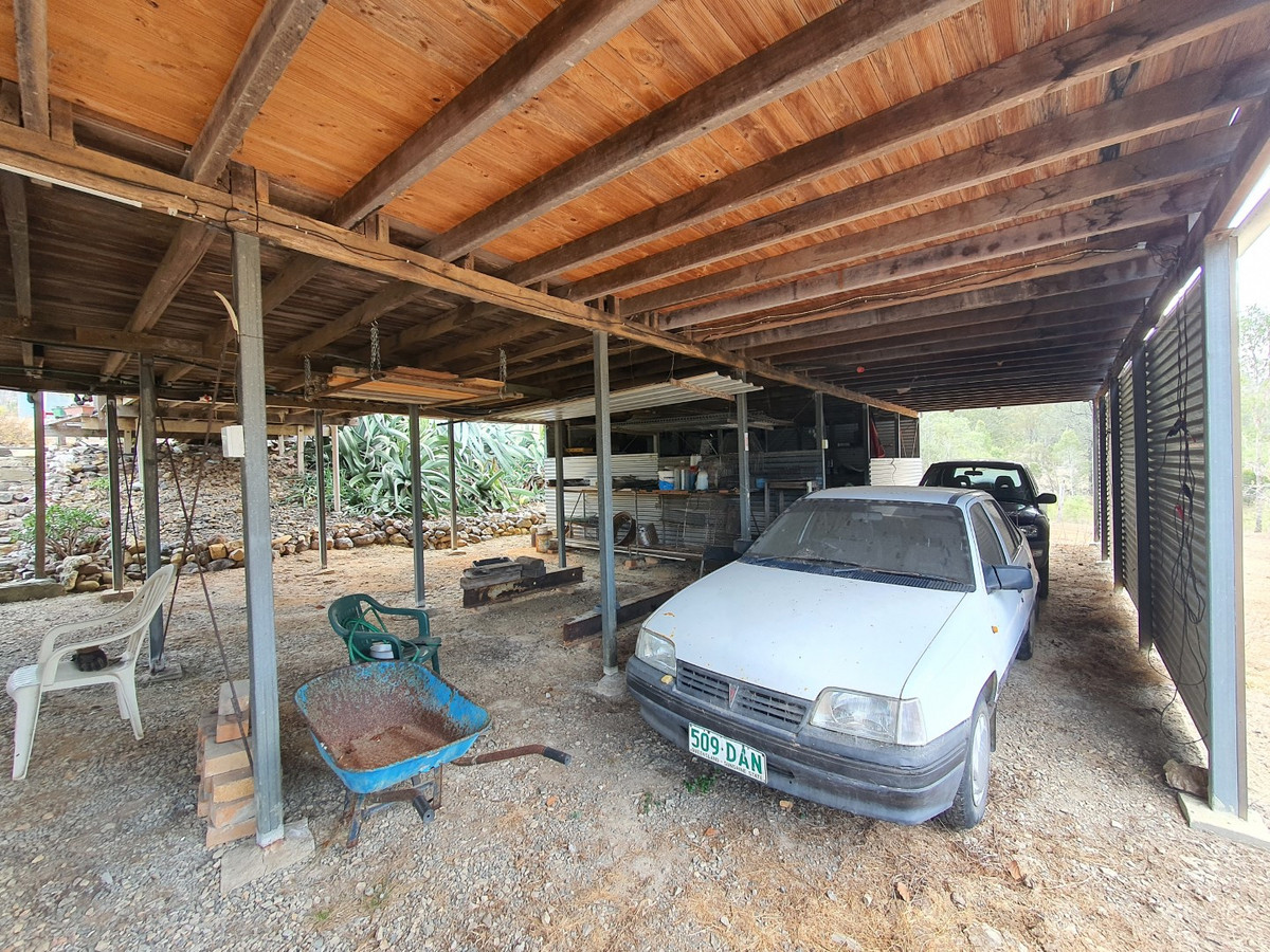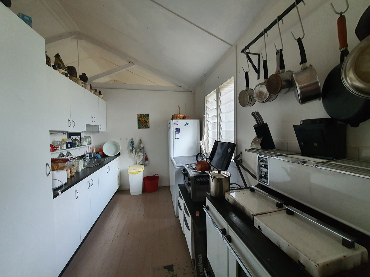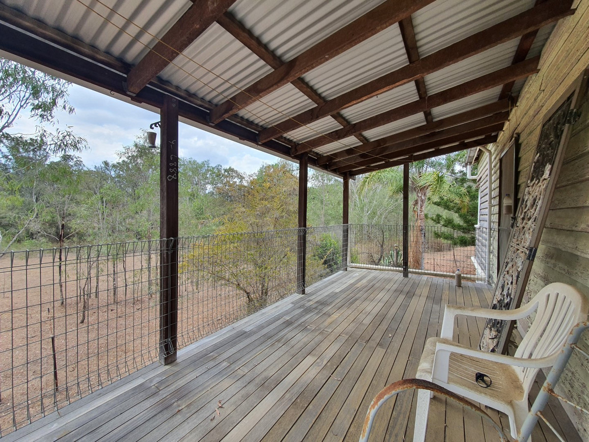 * Main residence is high-set with 3 or 4 bedrooms, 2 separate living areas, kitchen with wood stove + gas cooker, bathroom with laundry and separate toilet, verandah almost entire length of the house captures stunning breezes through summer & morning sun in winter. There is also a 3 bay Colourbond shed at the rear of the property and direct level access to the back of the house (without walking up stairs)