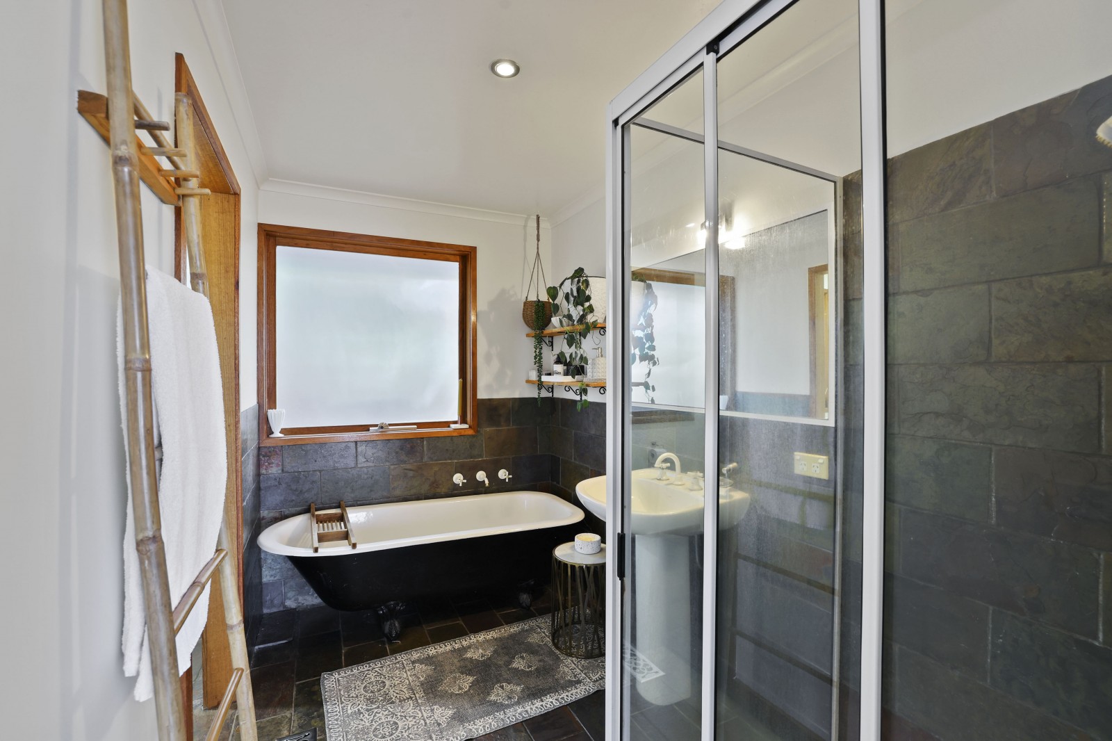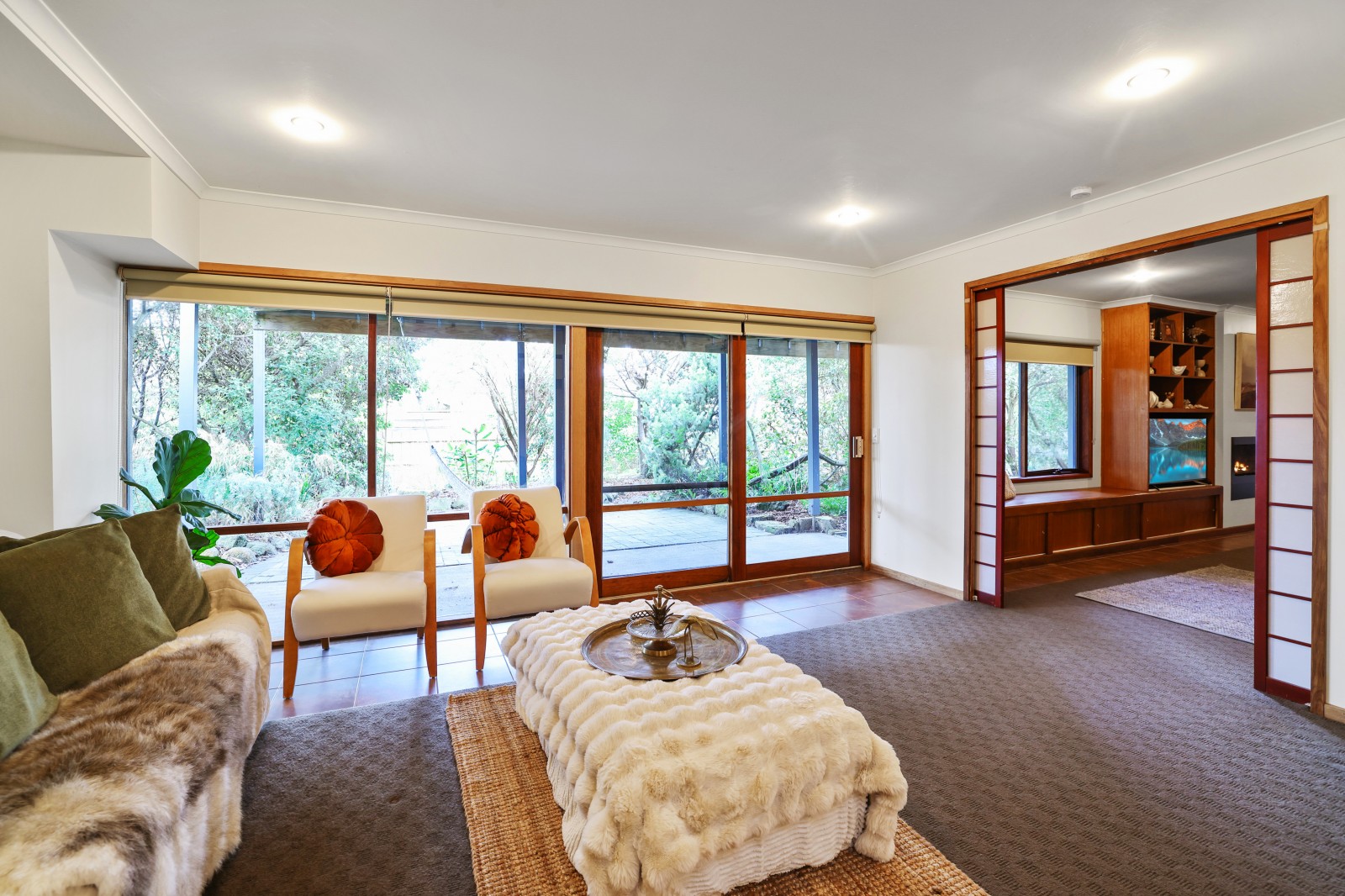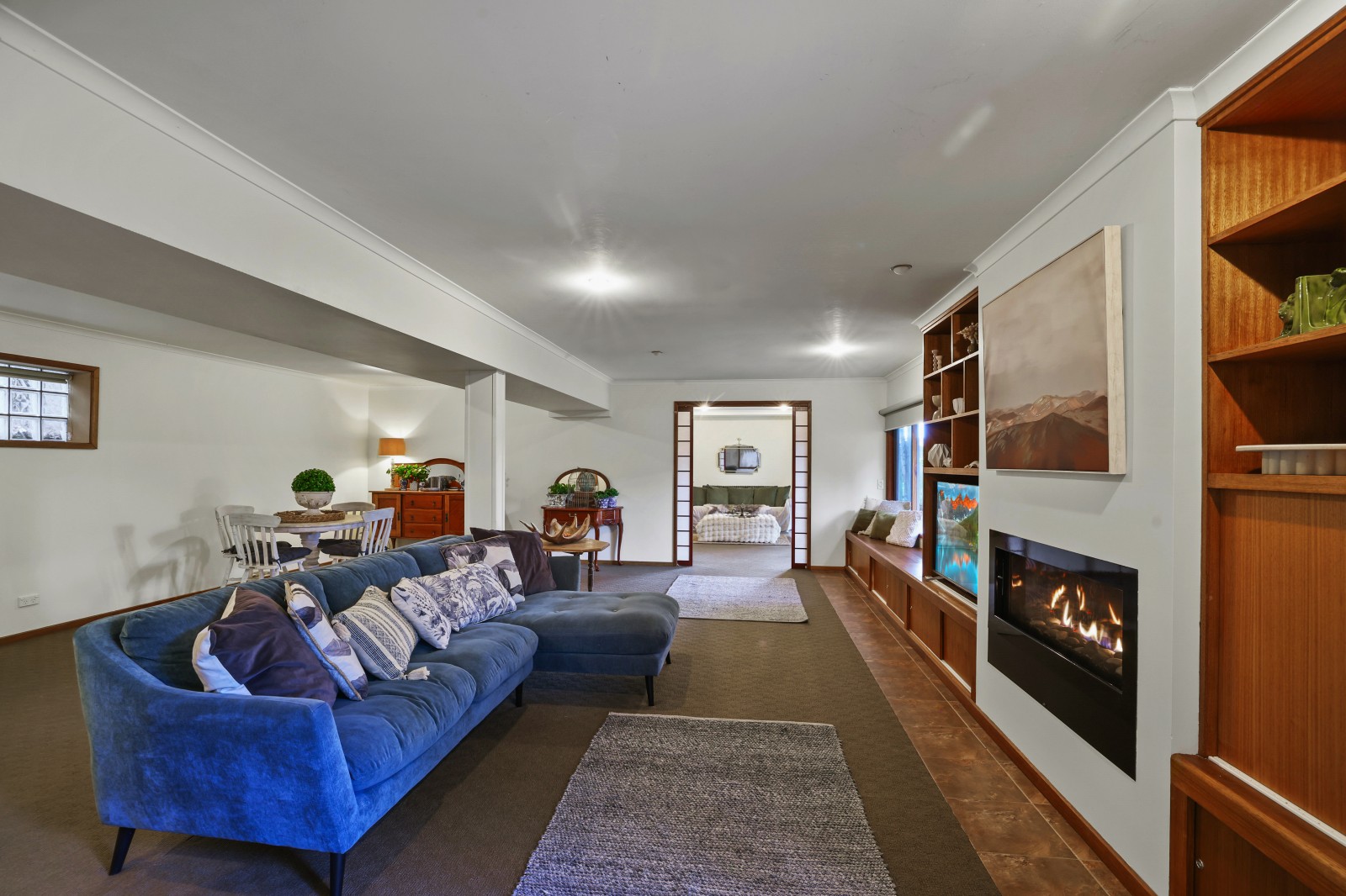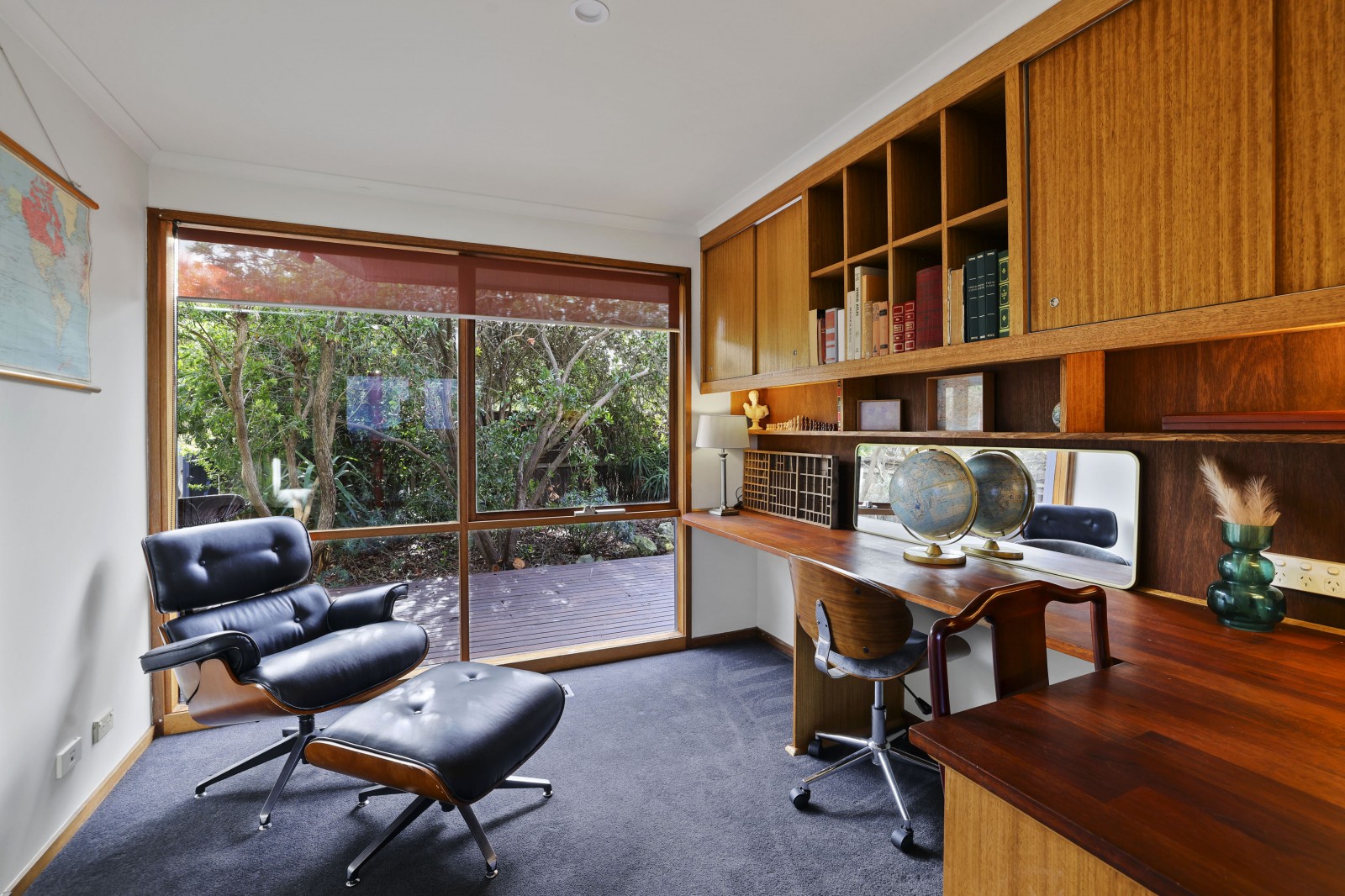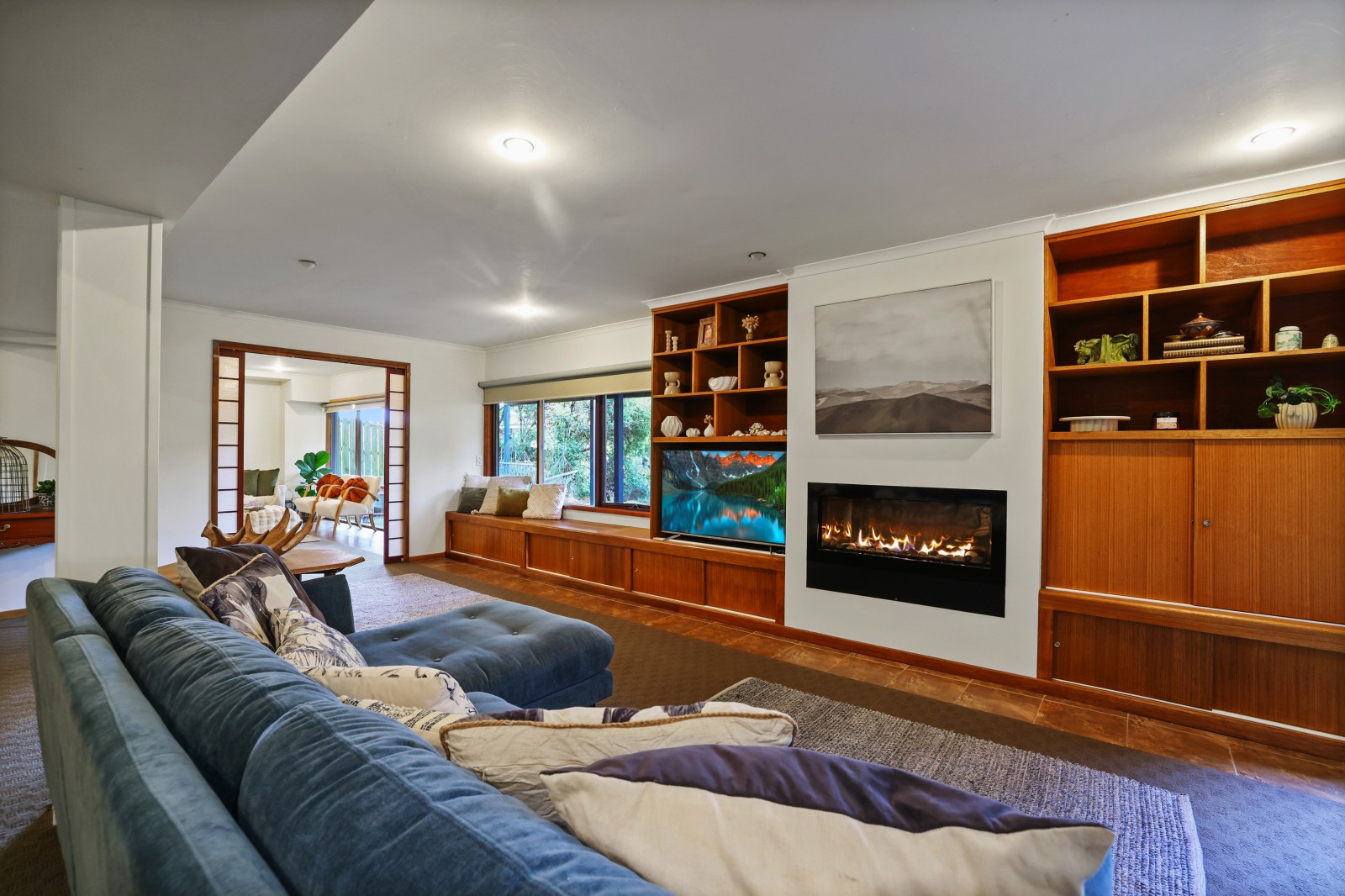 There is a separate north facing office / study, plus a private reading room , accommodation of 4 bedrooms and Bathroom plus the master bedroom has its own WI Robe and ensuite, staircase to the downstairs ground level that features another entrance from the back yard into a wonderful large open family living space with a gas log fire, another bedroom and sitting room, full size bathroom and access to the dual garage this area would be great for separate family or guests living overlooking a private outdoor patio.
