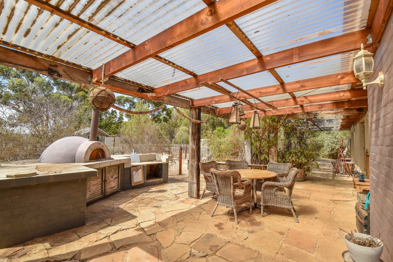 The outdoor entertaining area is a true highlight, featuring Himalayan sandstone crazy pave, reclaimed timber supports from the old Sir Donald Bradman stadium in Adelaide, and a wood-fired pizza oven.