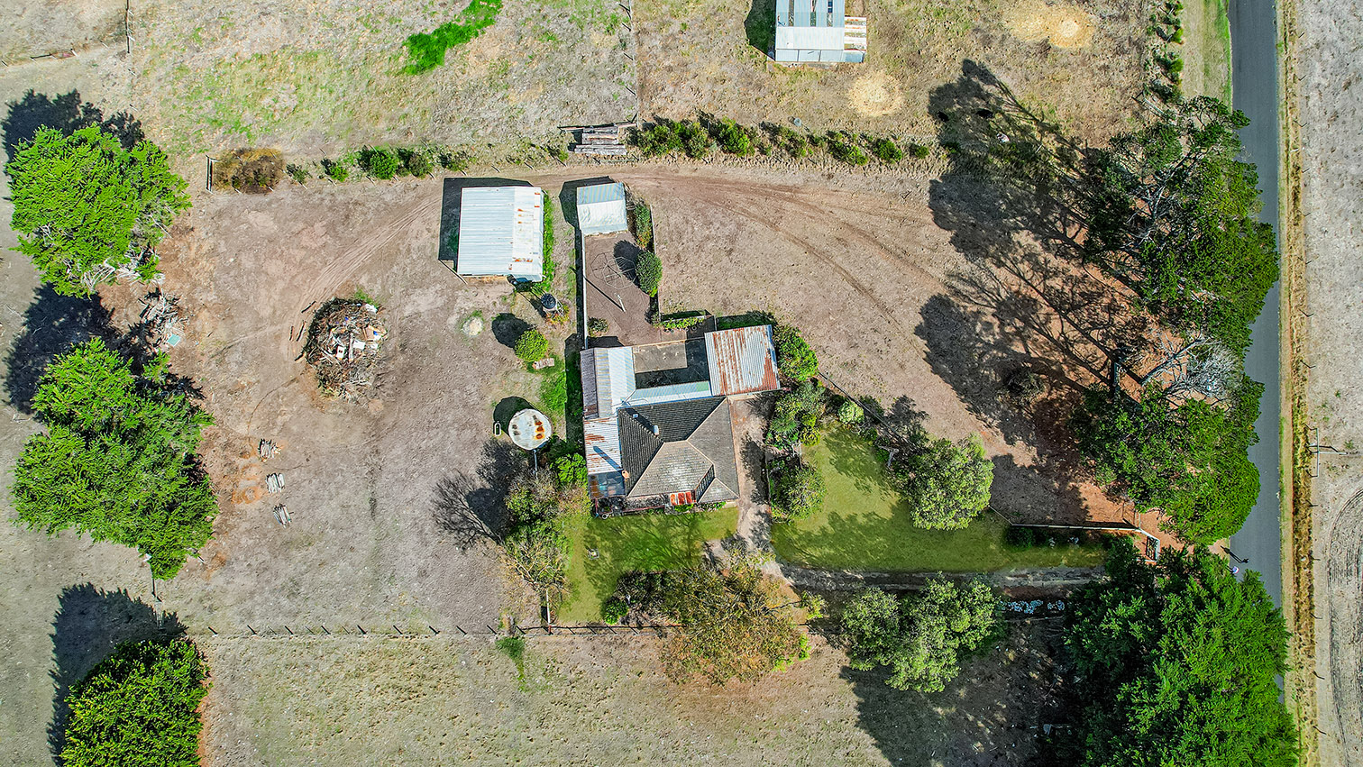 Has a bore and submersible pump, huge machinery shed plus another lock up shed, two large paddocks with established trees which would be ideal for a horse.