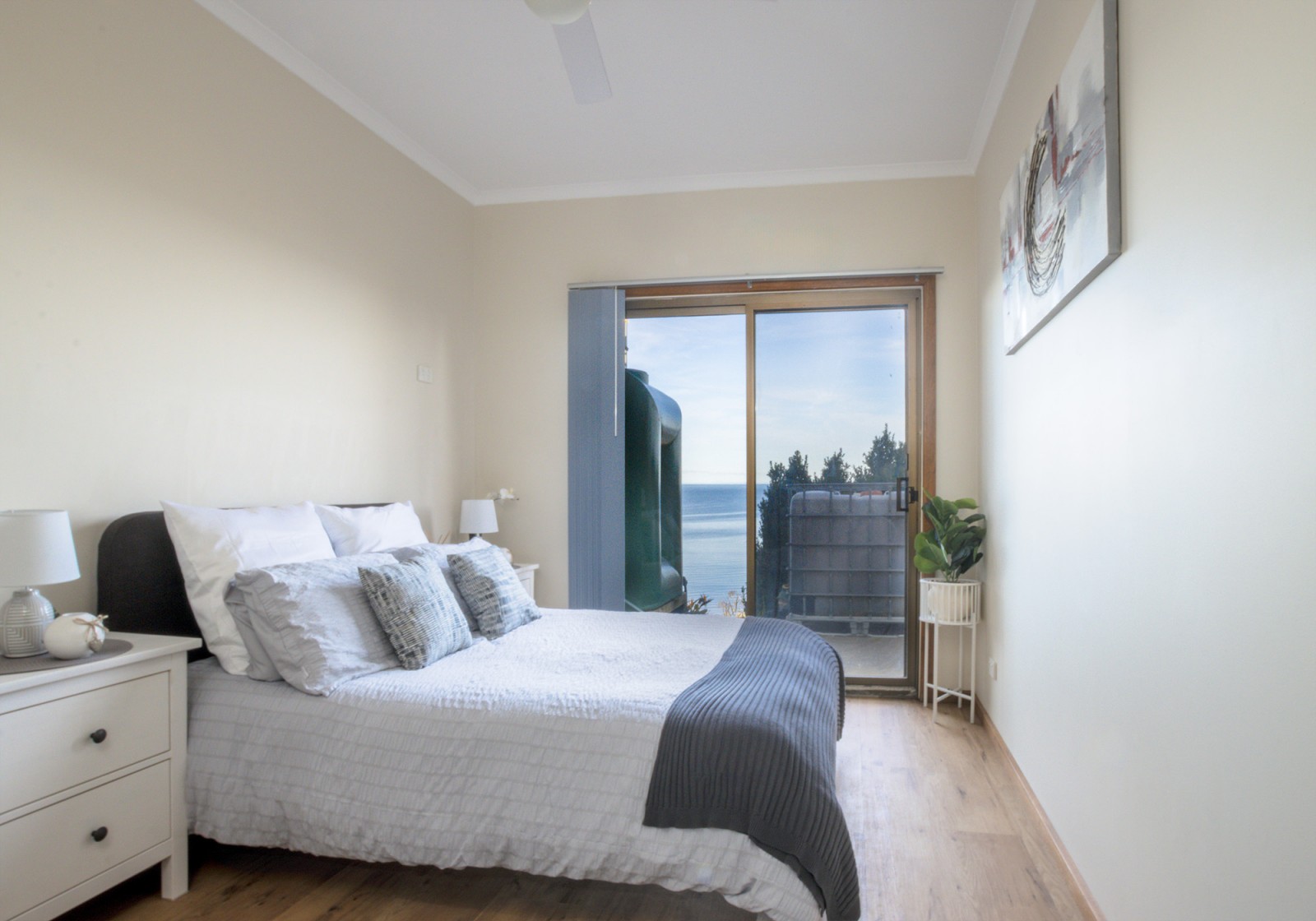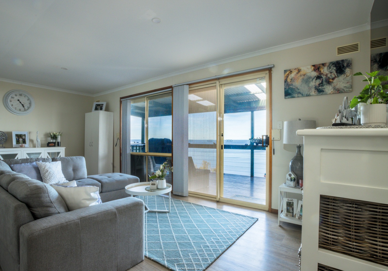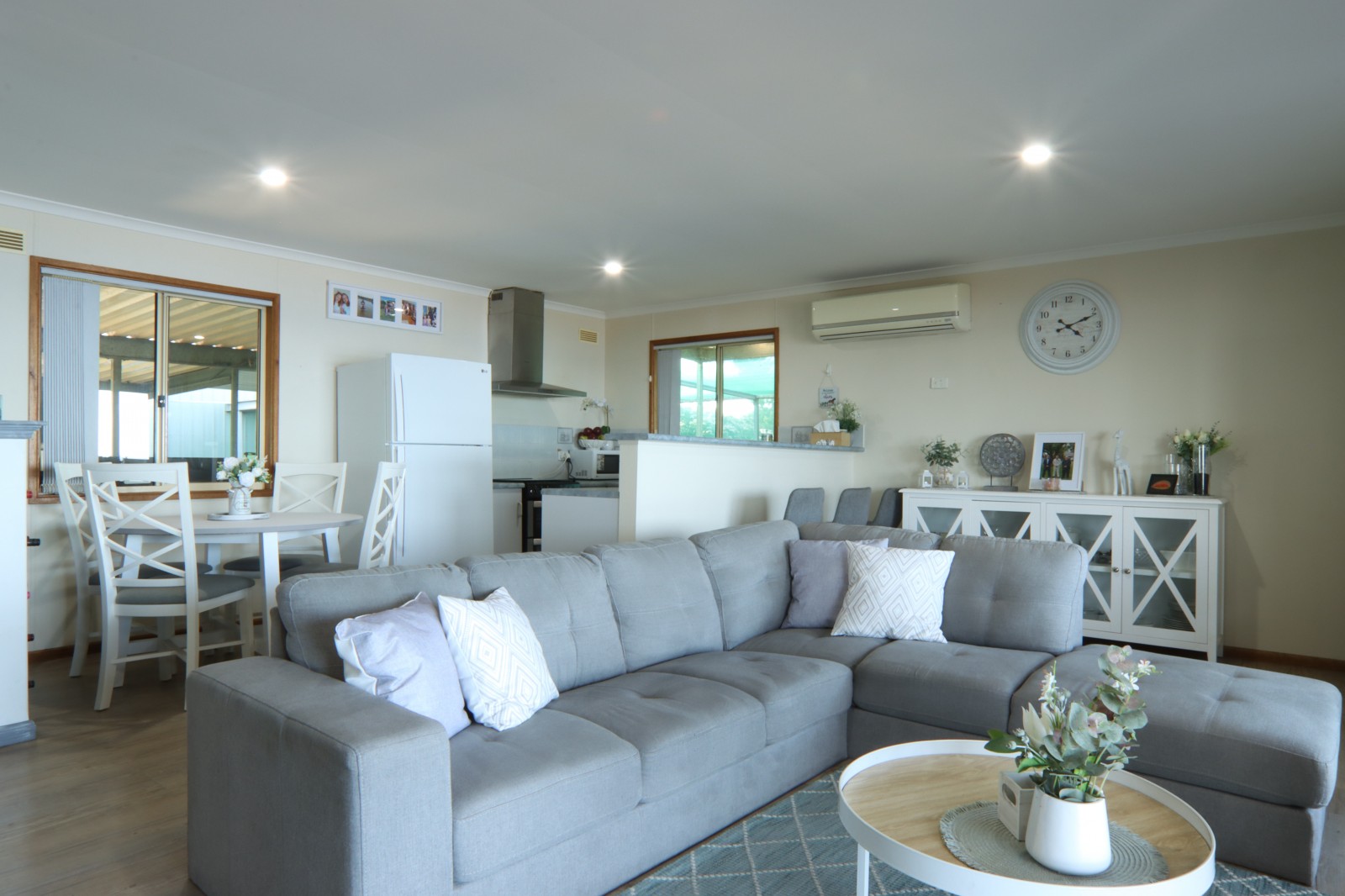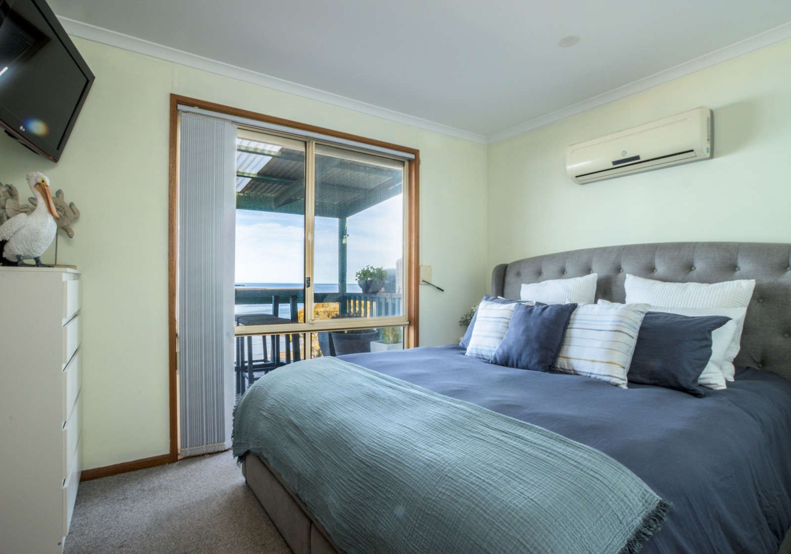 Step into a light-filled open-plan living area that frames the sea like artwork. The kitchen flows easily into lounge and dining spaces, perfectly designed for family life or entertaining with friends. The master bedroom offers a walk-in robe and split-system air conditioner, while bedrooms two and three feature ceiling fans (plus air conditioning to bedroom three). A study or potential fourth bedroom adds flexibility, making the home as practical as it is beautiful.