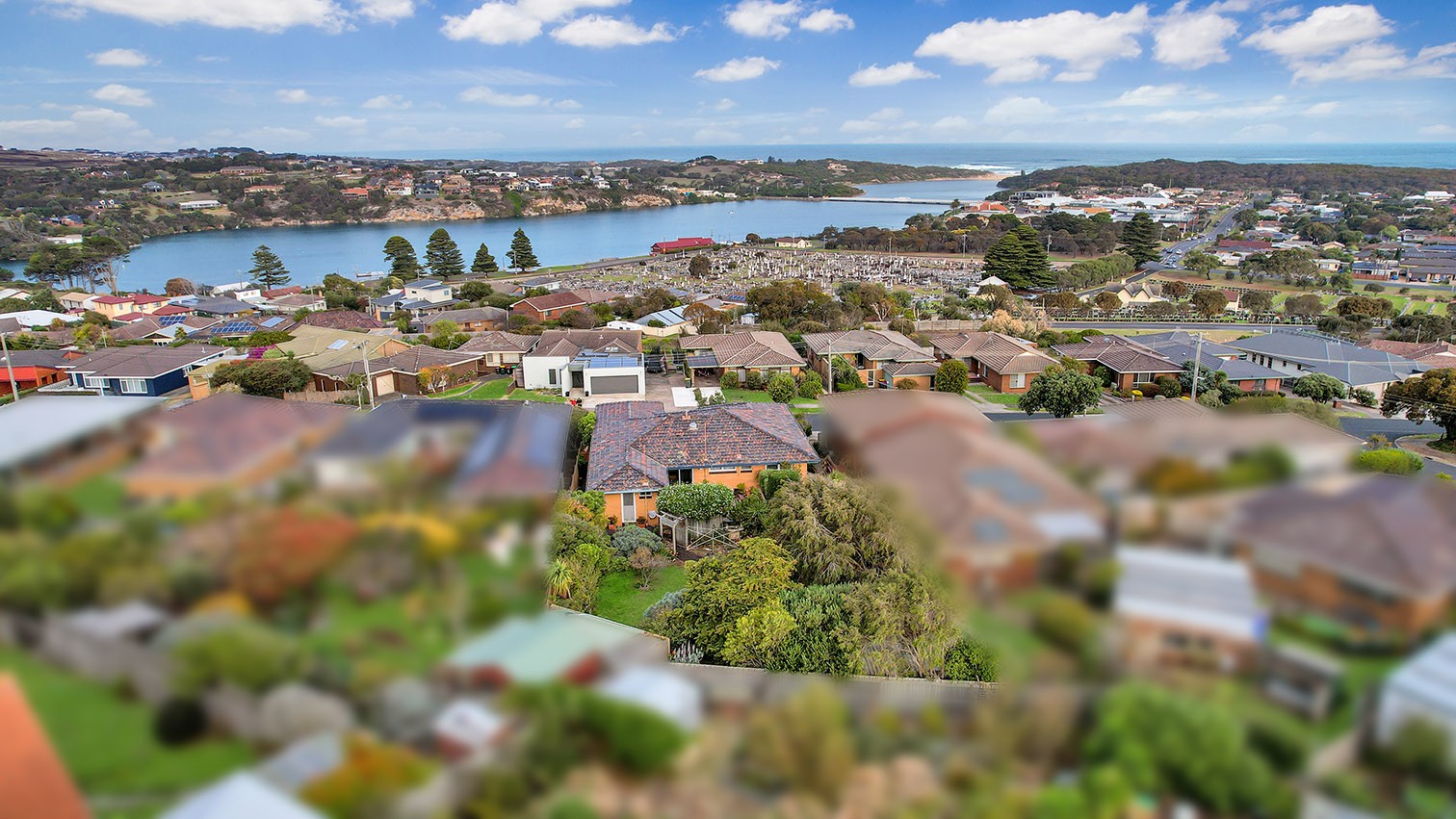 A classic elevated retro brick home with sweeping Hopkins River and sea views in the sought after East Warrnambool area.