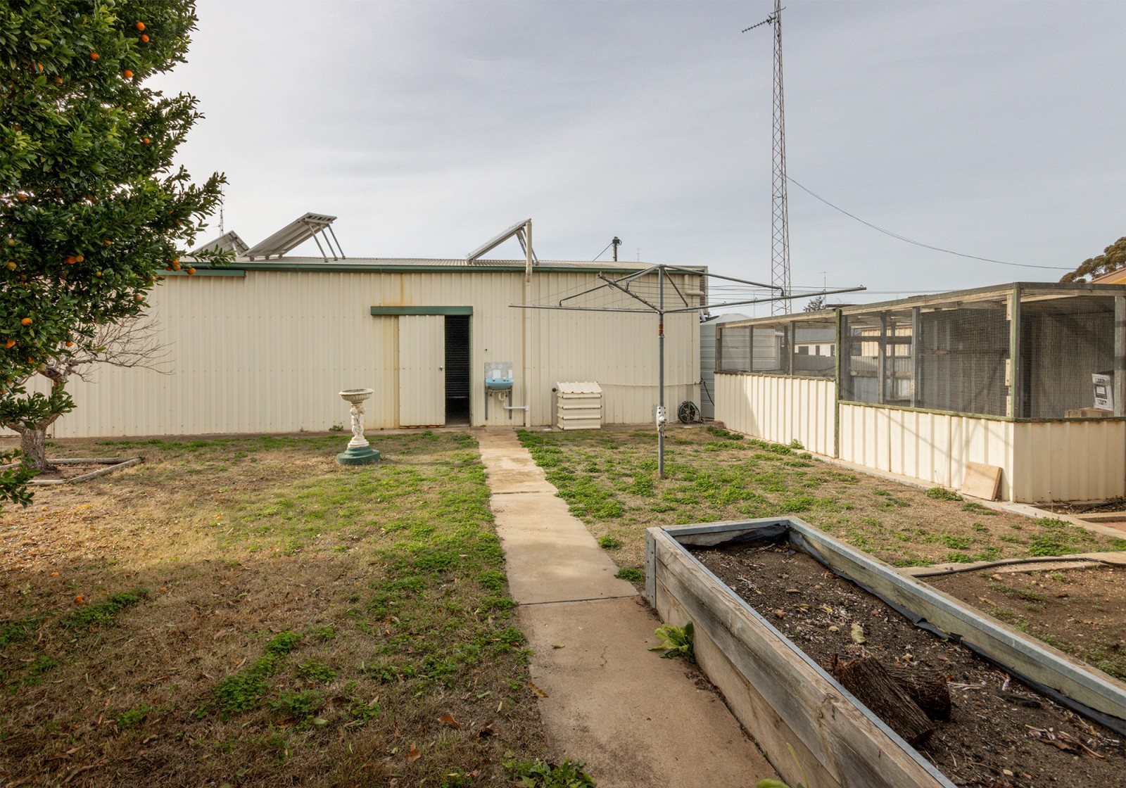 Set on a generous 1,050m² allotment, this cosy 2-bedroom, 1-bathroom home in North Moonta is the perfect start for first-home buyers, downsizers, or savvy investors looking for solid value. The master bedroom features a built-in robe and access to the front verandah, while the second bedroom opens to an enclosed sitting area overlooking the backyard. The kitchen offers electric cooking, a dishwasher, and walk-in pantry, flowing into a comfortable living space with split system, combustion heating, and evaporative cooling throughout. The bathroom includes a bath, shower, vanity, and a separate toilet for added convenience. A return bullnose verandah adds charm and helps keep the home cool in summer. Outside, the 4-bay shed with 3-phase power includes 3 secure parking bays, one with drive-through access and 2.8m clearance – ideal for small vans or boats. There's also a shower and toilet in the shed, ready to be brought back to life with a little TLC.