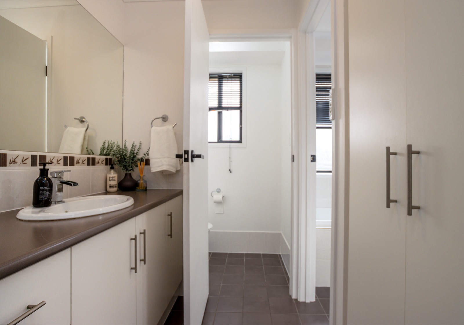 The main bathroom features a bath, shower, vanity, and separate toilet. Additional practicalities include a linen press, well appointed laundry and storeroom.
