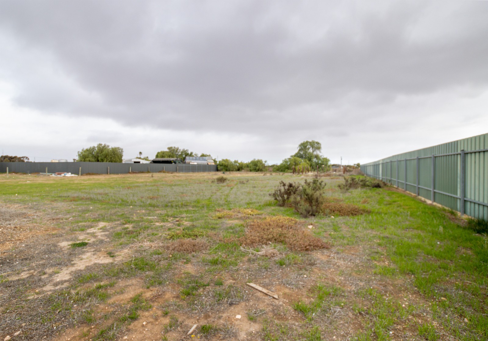 - Partially fenced backyard with established gardens