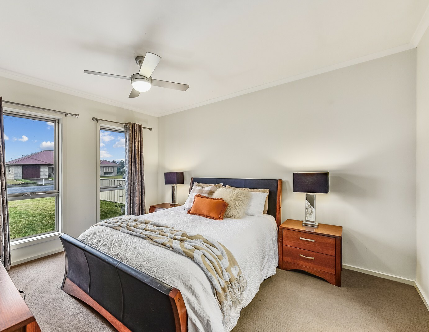 The master suite is a true retreat, featuring a spacious bedroom, his and hers walk-in robes, and a beautiful ensuite with luxurious electric underfloor heating which is a particular asset in the winter time. Three additional bedrooms are generously sized with built-in robes, including one already fitted with office cabinetry. The main bathroom is equally impressive, offering a large spa bath, separate shower, and modern vanity. A separate toilet and a generously sized laundry add everyday practicality, along with excellent linen storage throughout the home.