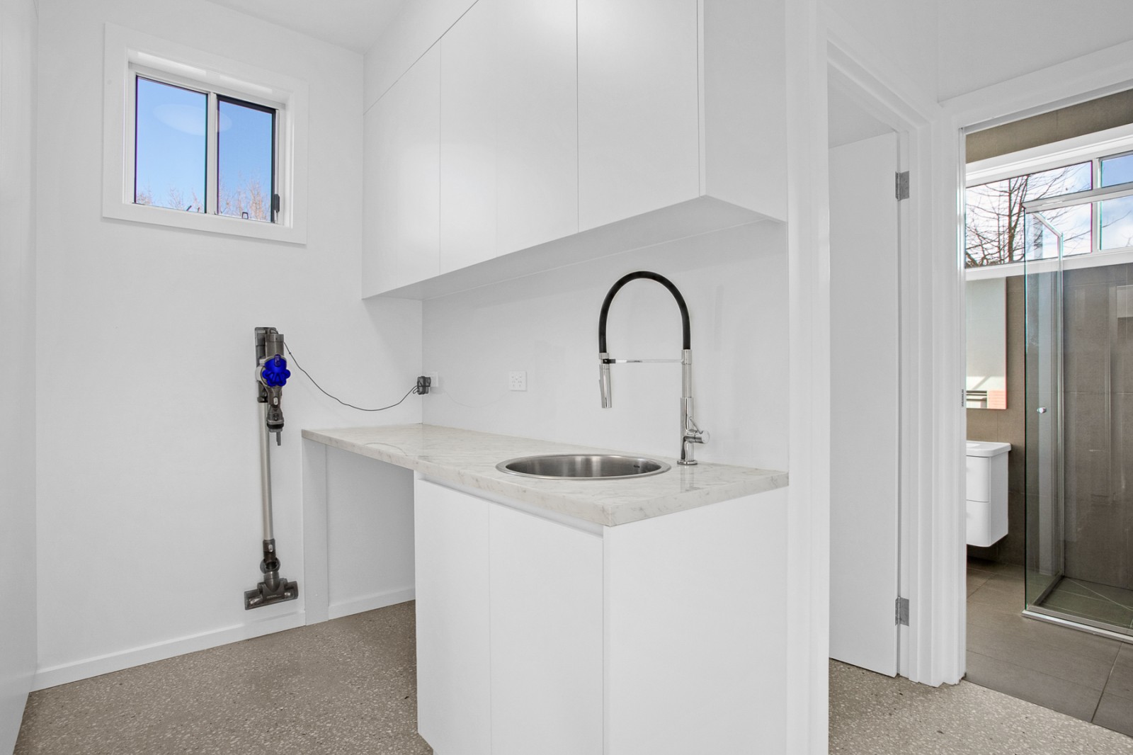 - Laundry with floor-to-ceiling storage and ample bench space
