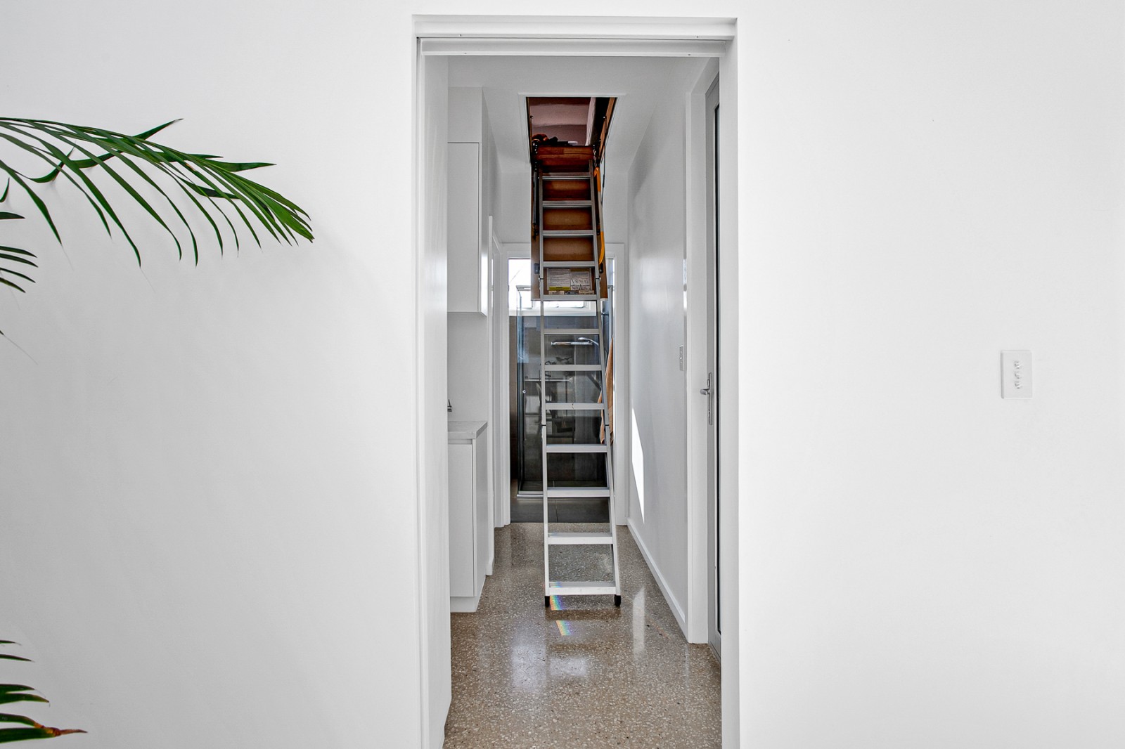 - Mezzanine storage with ceiling ladder access