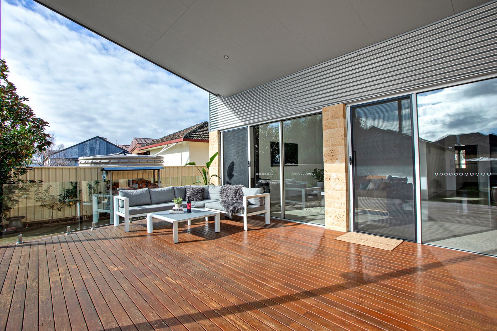 - Impressive 7m x 5m decked alfresco area with glass balustrading overlooking the rear yard
