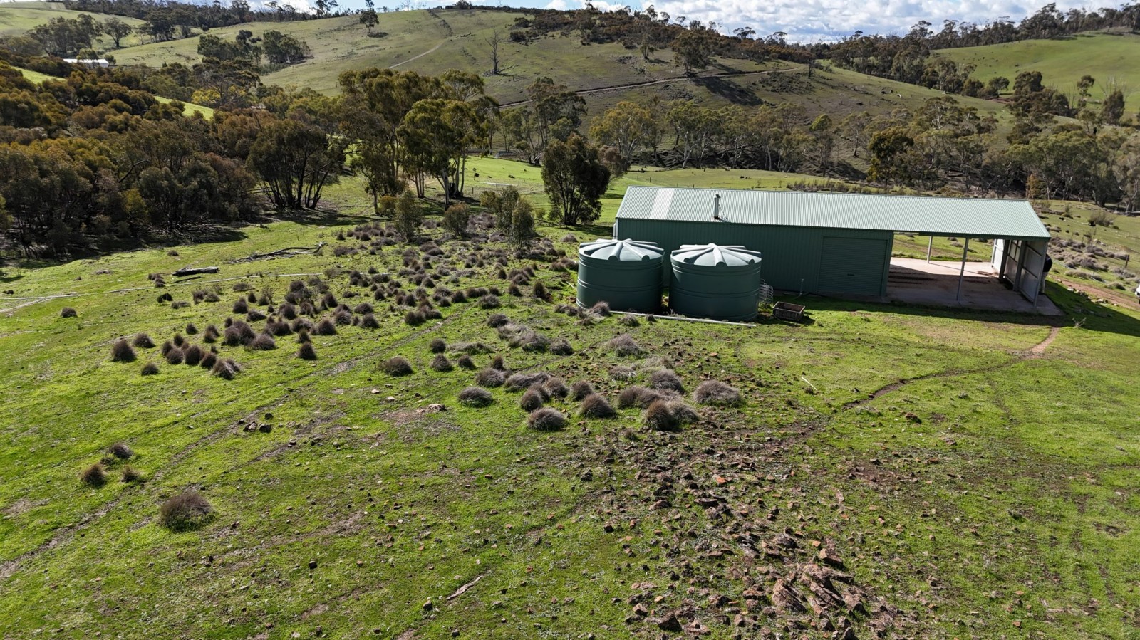 The property is well equipped with practical infrastructure, including a substantial 12m x 8m* shed with concrete floor and heating, an 8m x 6m* carport as well as a 40,000L* rainwater storage to support off-grid living. Sustainability is a key feature, with 36 solar panels powering a bore, providing off-grid capability and long-term resource security