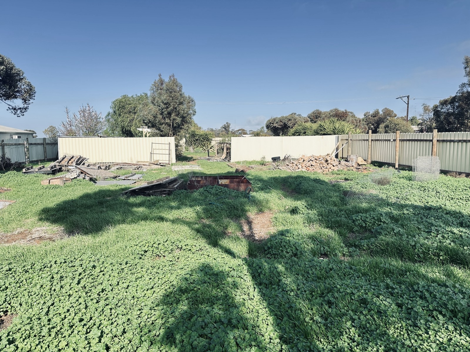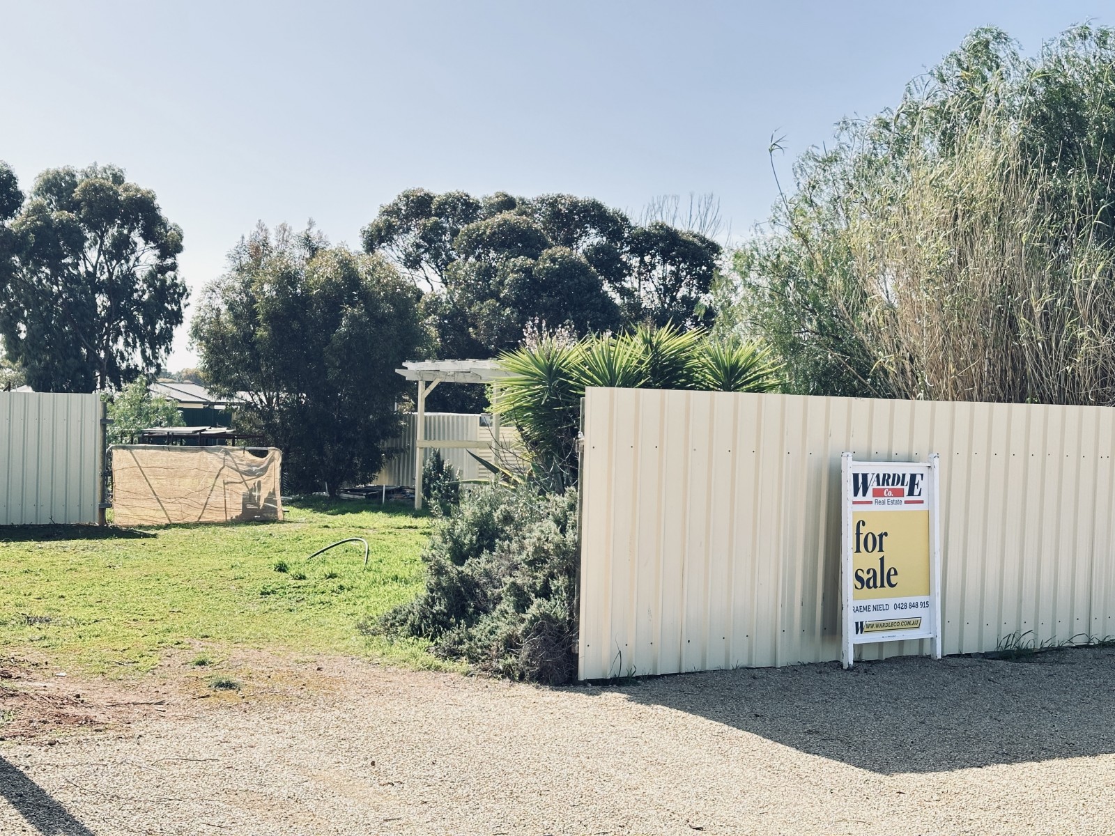 Quarter acre residential block to build your new home on. 20m frontage, flat block and high fencing on 4 sides. Garden sheds and pergola included. Quiet location with rural outlook and easy walk to the main street.