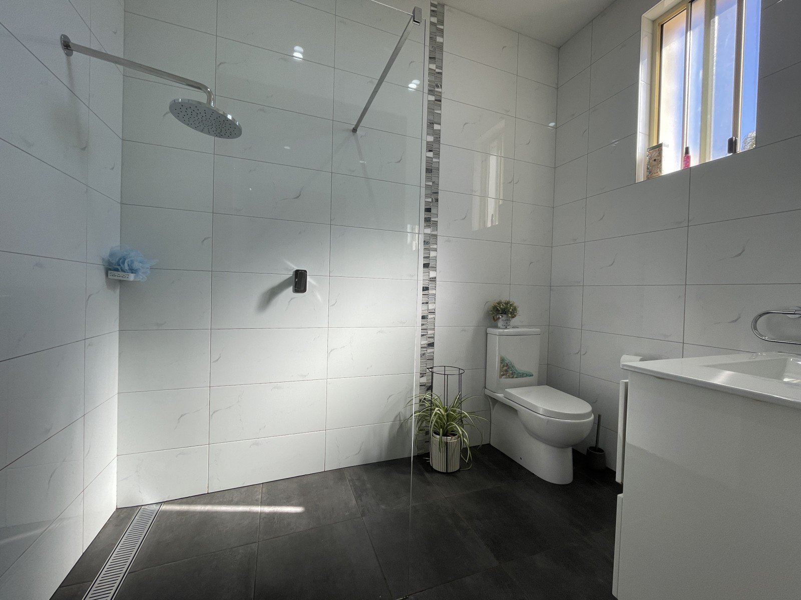 - Beautiful upgraded bathroom with large alcove, modern decor and floor to ceiling tiles