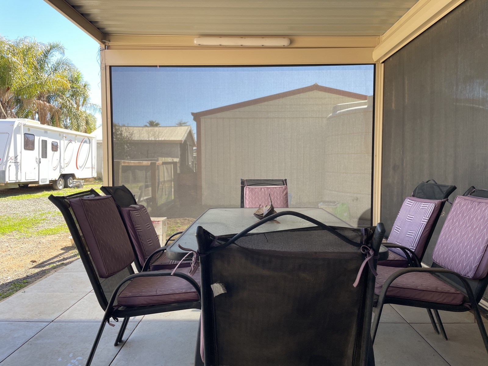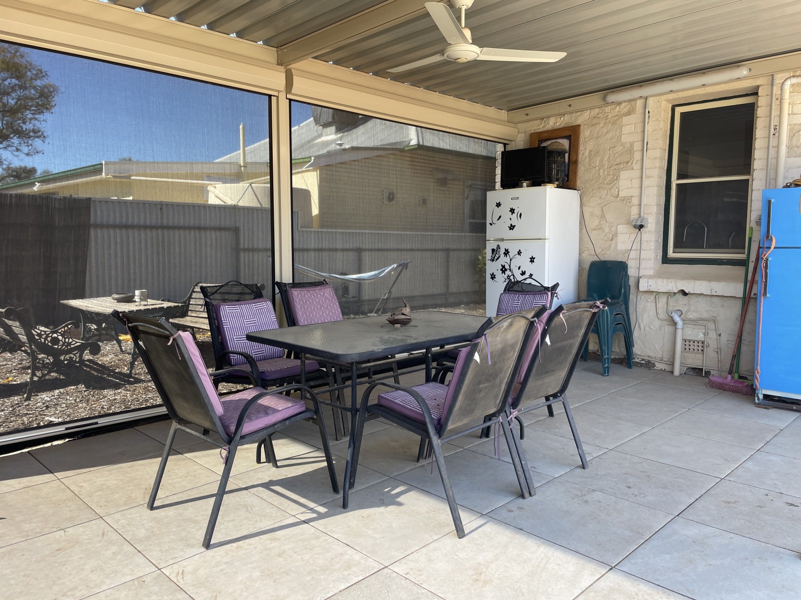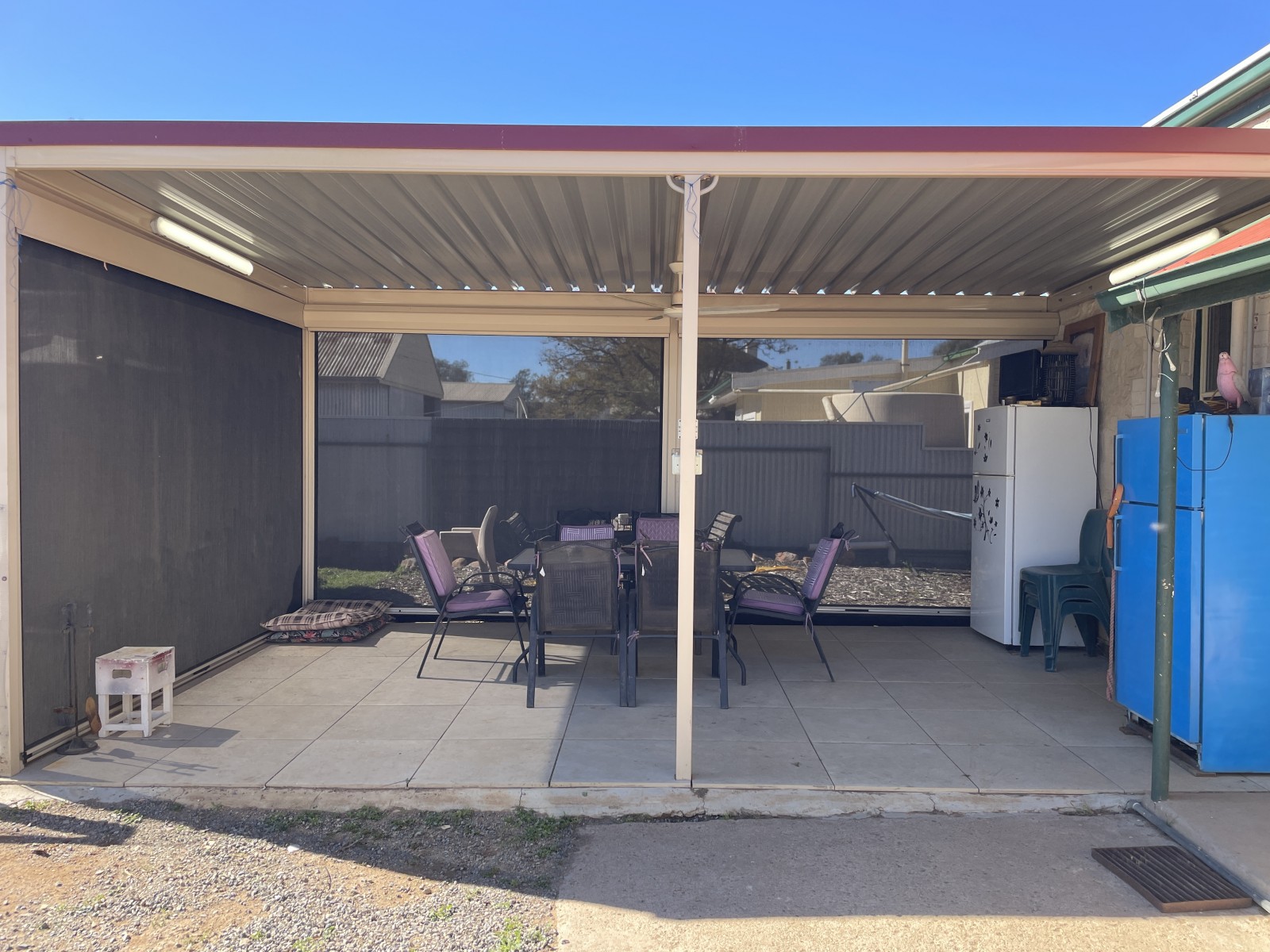 - All weather outdoor entertaining area with zip track blinds and ceiling fan