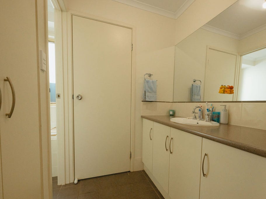 The galley kitchen provides long, raised breakfast bar, great bench area, cupboards and even a servery, ideal for barbecue under the pergola.