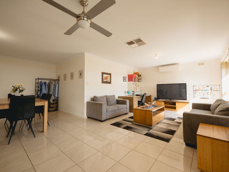 The Master bedroom offers a spacious ensuite and walk-in robe. Four bedrooms in total, all with ceiling fans, built-in wardrobes. Three-way bathroom with large vanity. Well-designed kitchen/dine and family room with reverse cycle split system and evaporative air conditioning ducted throughout.