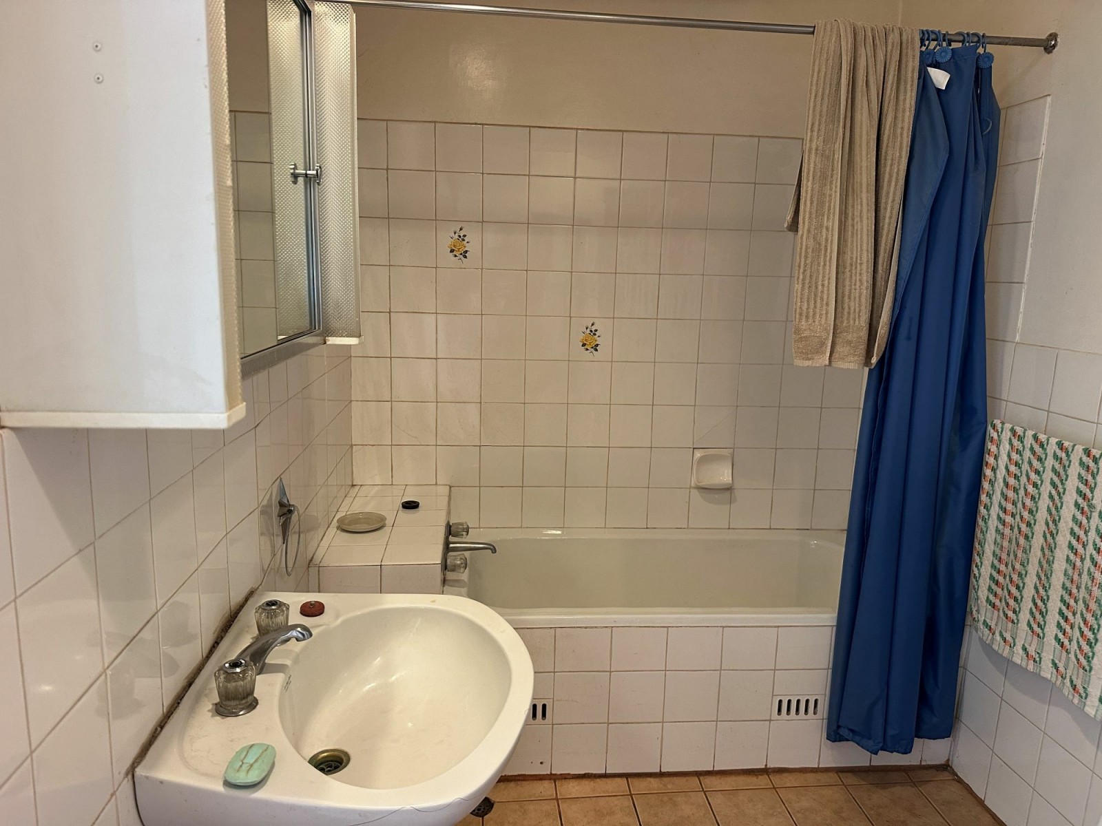 The kitchen, though dated, provides plenty of room for renovation, currently featuring vinyl flooring, laminate cabinetry, ample storage and bench space, and a freestanding electric oven with cooktop. With its breakfast bar and open layout, it’s a space ready to be brought back to life as the heart of the home.