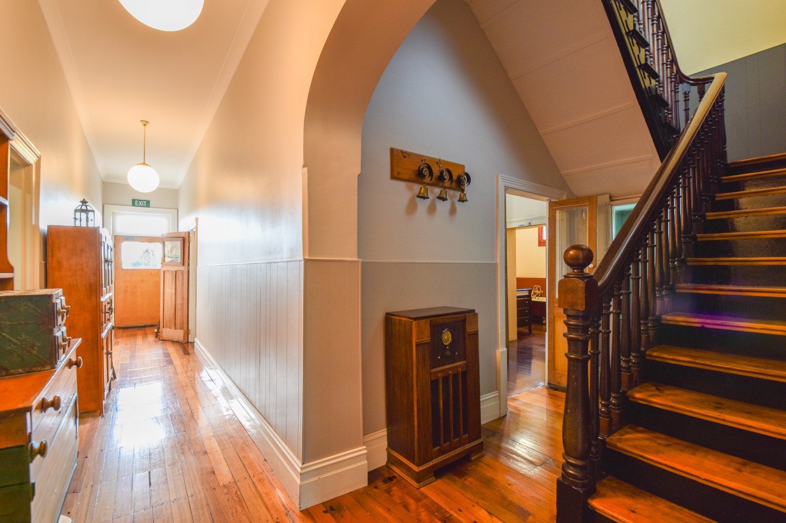 Retaining key original features such as high ceilings, polished timber floors, and a restored timber staircase, the property blends historic charm with practical functionality.