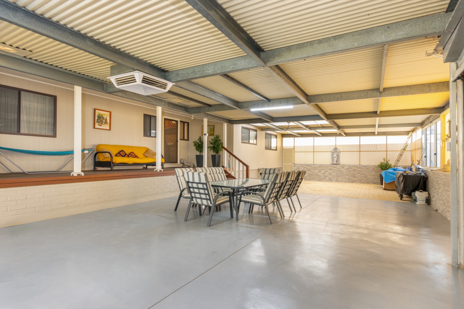 Huge Enclosed Alfresco with Evaporative Air Conditioning: Ideal for hosting family functions, BBQ’s or entertaining guests year-round.