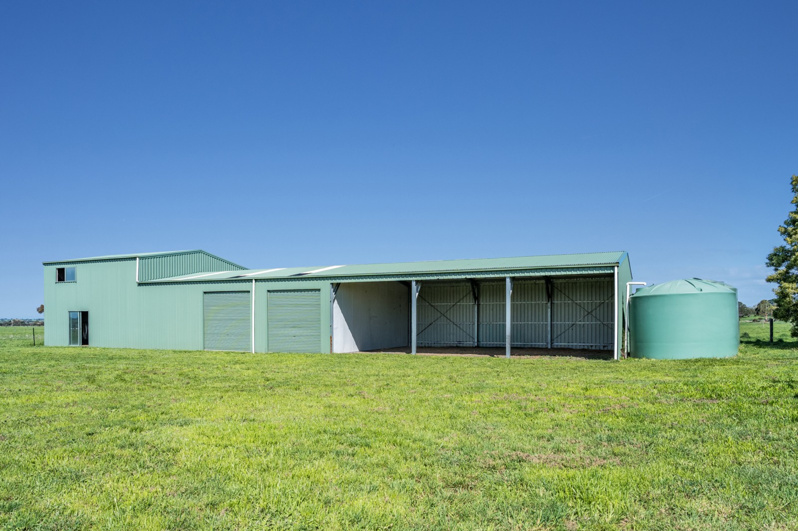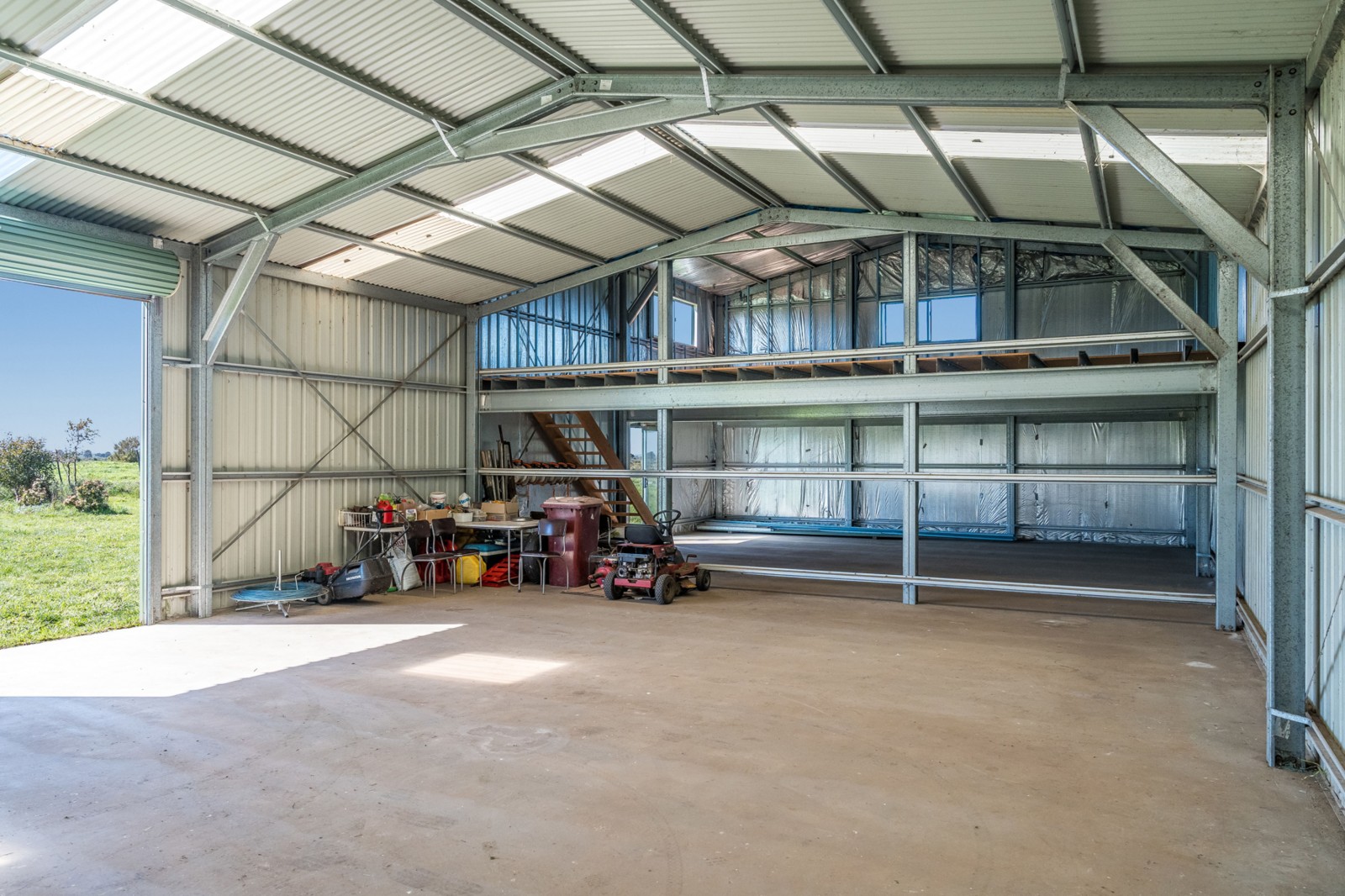 Infrastructure includes a high-quality 32m x 9m shed, part open-fronted for hay or machinery storage, with the remainder fully enclosed (2 roller doors), featuring a concrete floor and mezzanine area, ideal for a workshop or future development.
