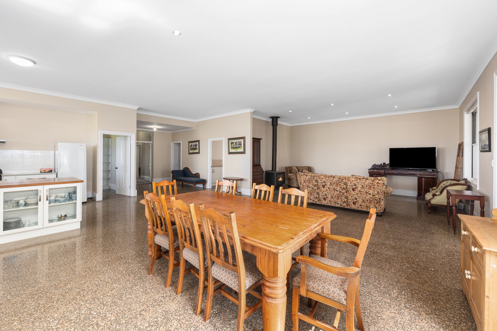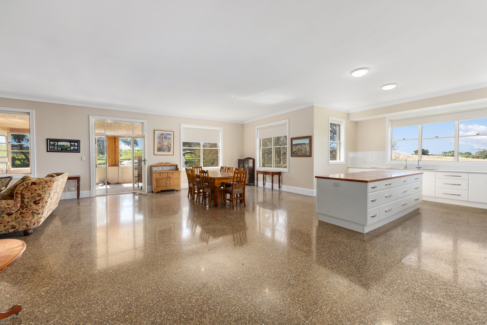 At the heart of the property is the homestead, offering 3 spacious bedrooms – 2 with built-ins, a light-filled open-plan kitchen/meals/living area with polished concrete floors, a feature of the home, which is warmed with slow combustion heating.