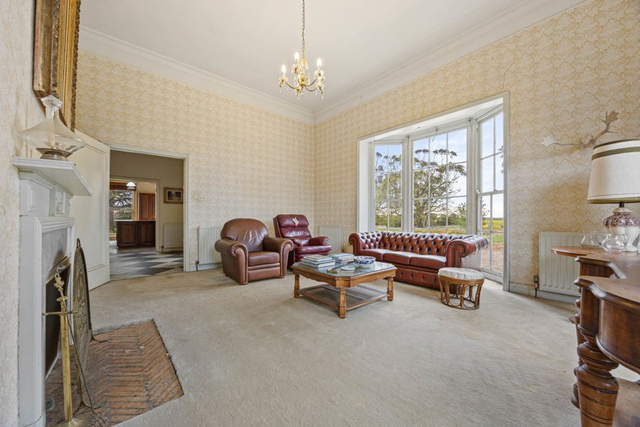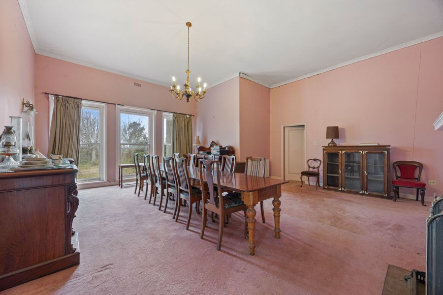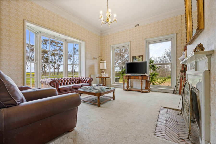 A highlight of Moorallah is its imposing six-bedroom homestead, a statement of timeless Western District architecture, set amidst sprawling lawns and mature trees. Supporting infrastructure includes a four-stand GI woolshed, machinery shedding, and well-laid-out paddocks designed for efficient mixed farming operations.