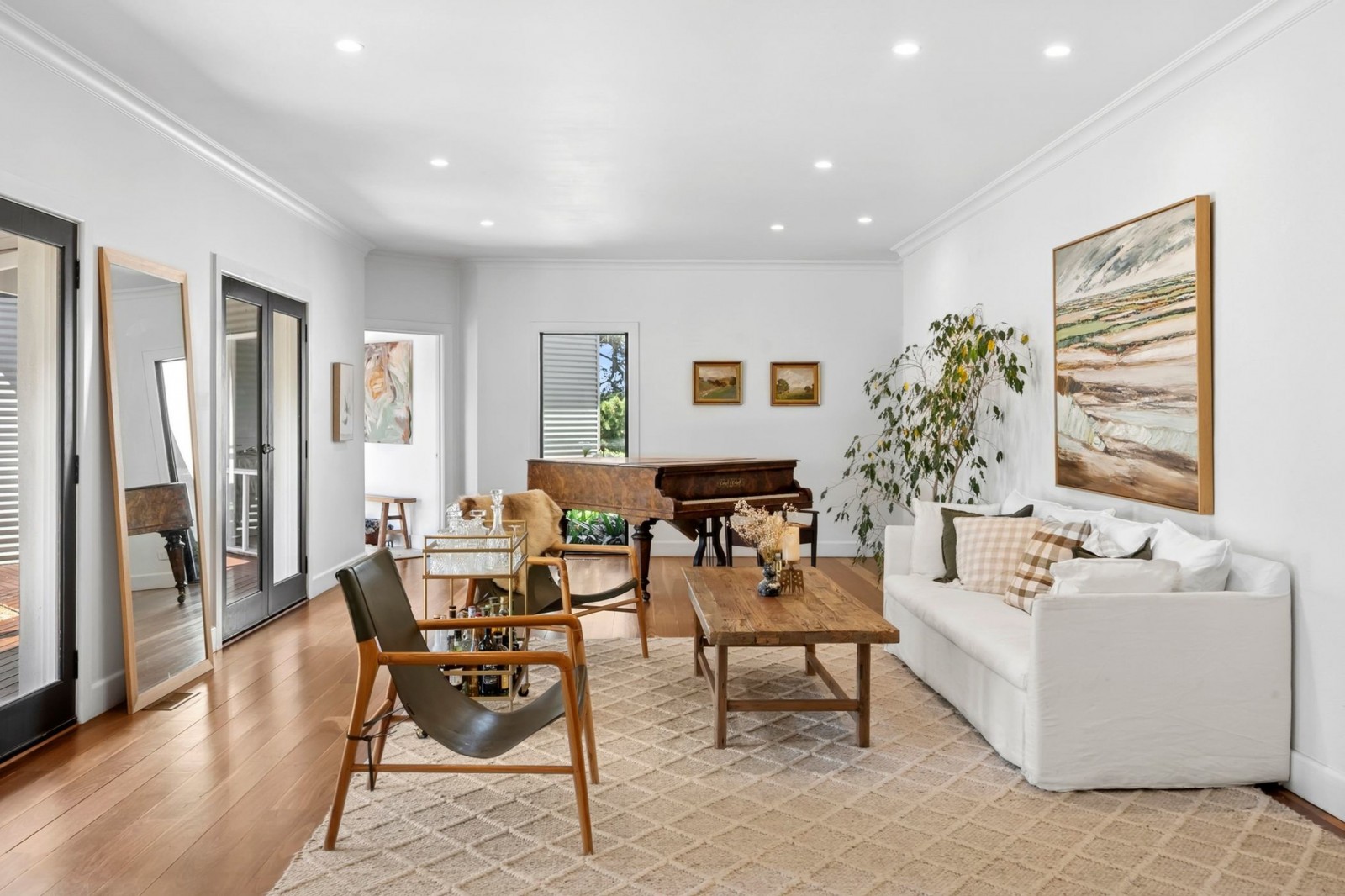 Two guesthouse studios complement the home, linked to the main residence via a garden boardwalk, each featuring a kitchenette, ensuite and bedroom - perfect for an au pair, gym/home office or artistic space.