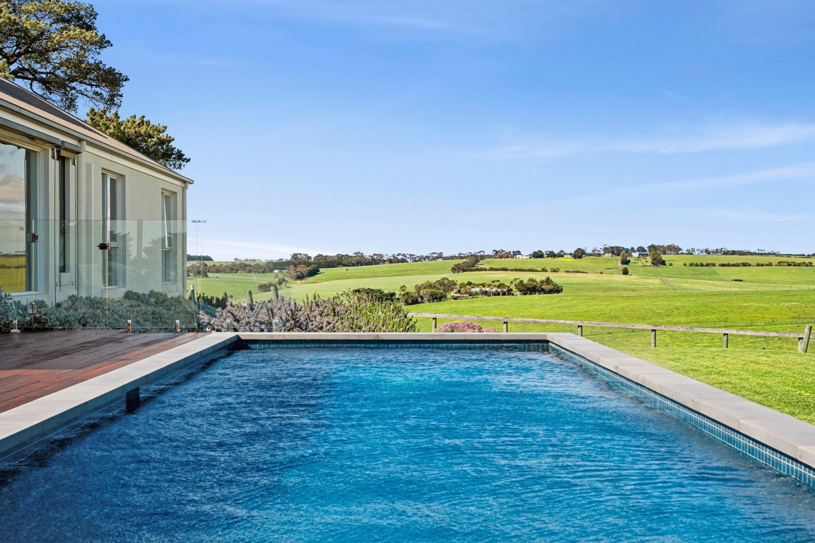 Enjoying infinity edge views over the paddocks, the solar-heated, salt-chlorinated, fully-tiled custom pool adds a touch of luxury to the country setting, whilst the kitchen garden, mature olive trees, auto garage with garden storage and cubby house for the kids completes the picture.