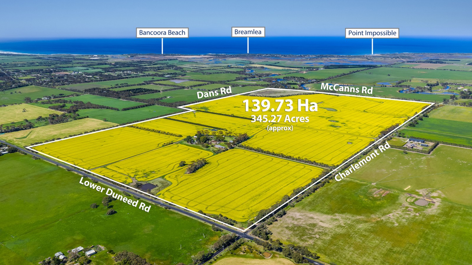 - Considerable road frontage to Lower Duneed Rd (north), Charlemont Rd (west), McCanns Rd (south) and Dans Rd (east)
