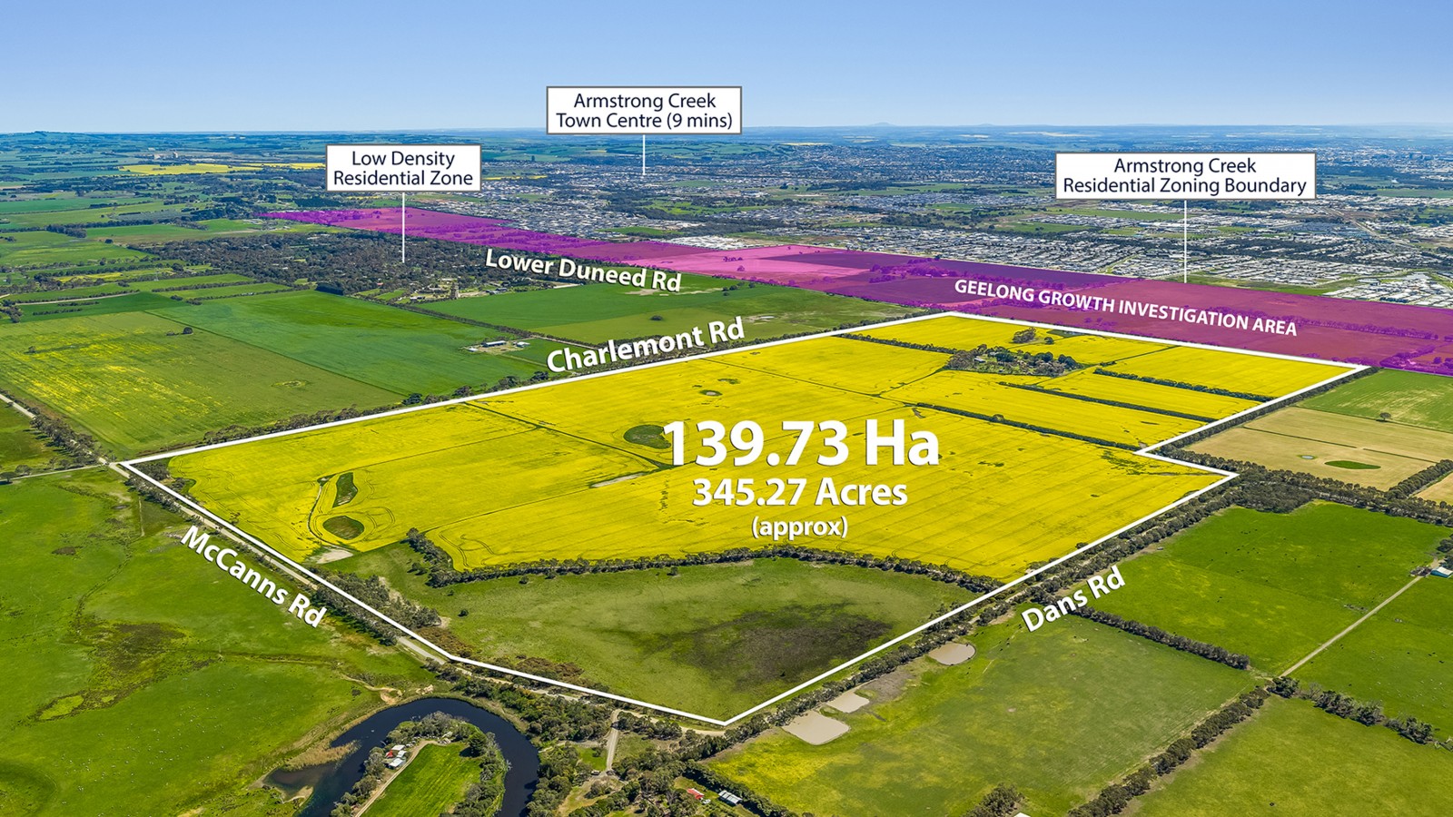 Sitting adjacent to the Geelong Growth Investigation Area (currently being considered as the logical continuation of the Armstrong Creek residential growth zone), this substantial acreage property offers a rare opportunity to acquire a significant private landholding that is strategically positioned for future rezoning consideration (STCA).
