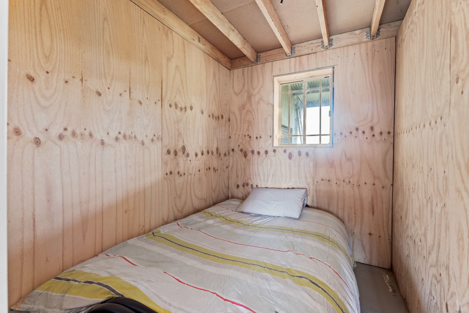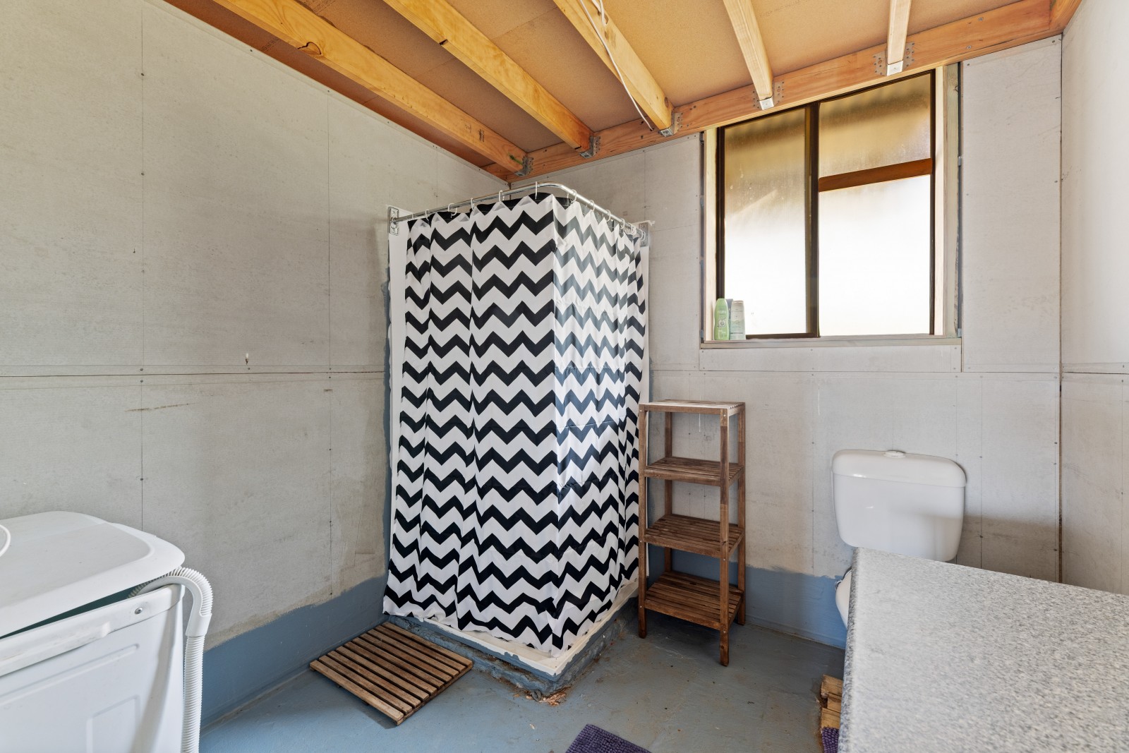A council approved steel shed converted weekender: Consists of 1 bedroom, 1 loft bedroom, bathroom, kitchenette, open plan living and dining room with SC wood heater. Instant gas hot water system, approx. 30000 litres of fresh water, pressure pump and septic system. Power is wired through-out with the power source coming from a generator. Mains power is located at the shed and can be connected.