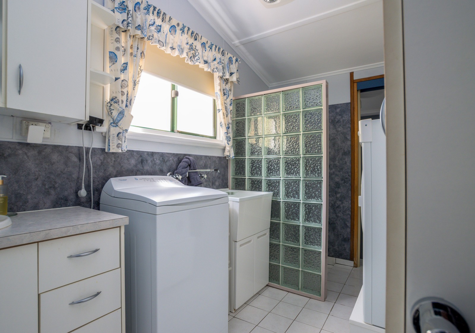 - Combined laundry/bathroom with shower, vanity, and W/C
