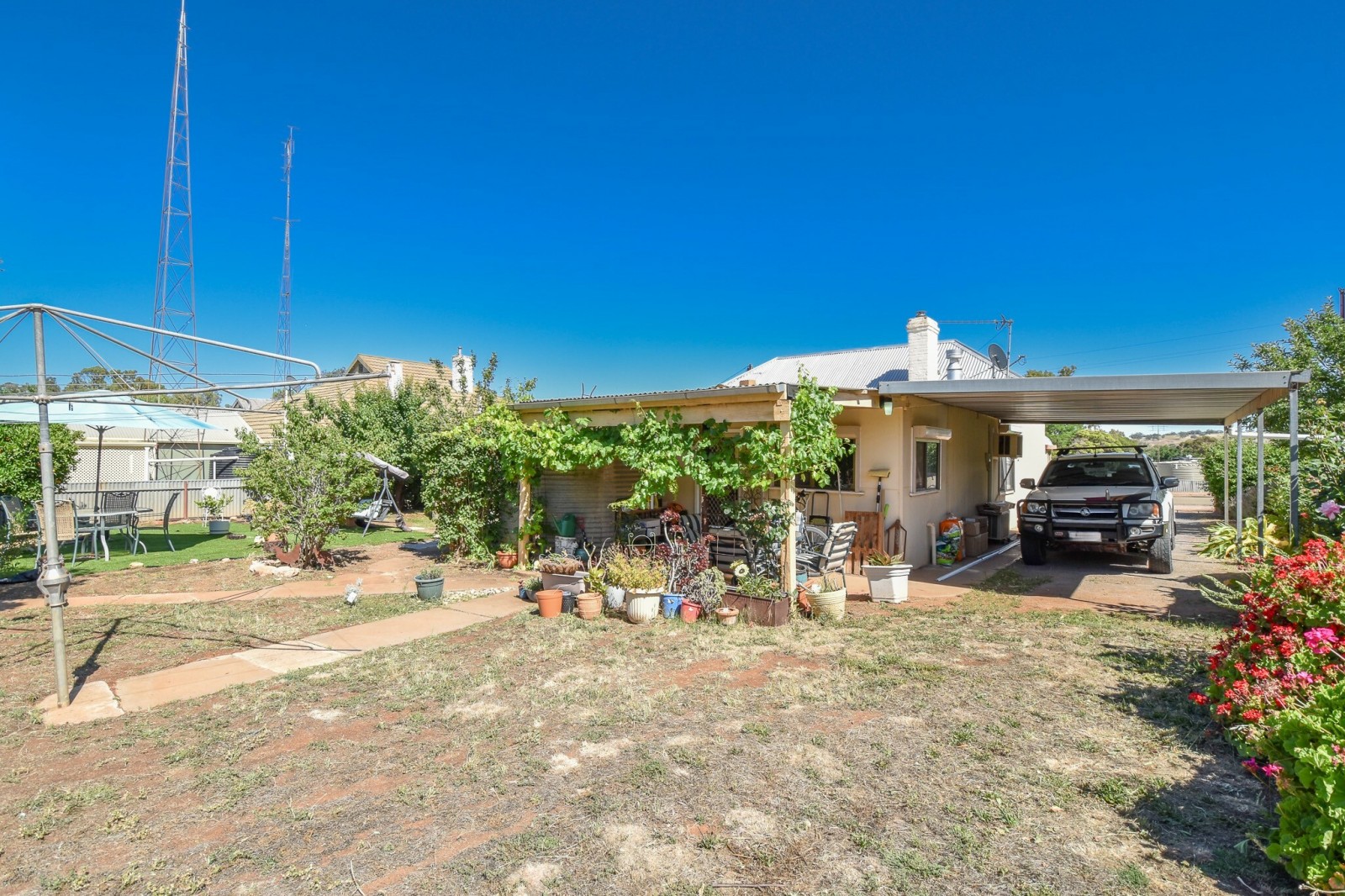 Outdoors, established roses highlight the front garden, while the spacious rear yard offers room to enjoy and entertain. An array of established fruit trees include walnut, orange, plum, peach, fig, apricot & nectarine. A carport and large double garage with concrete flooring and power provide excellent storage or workshop space.
