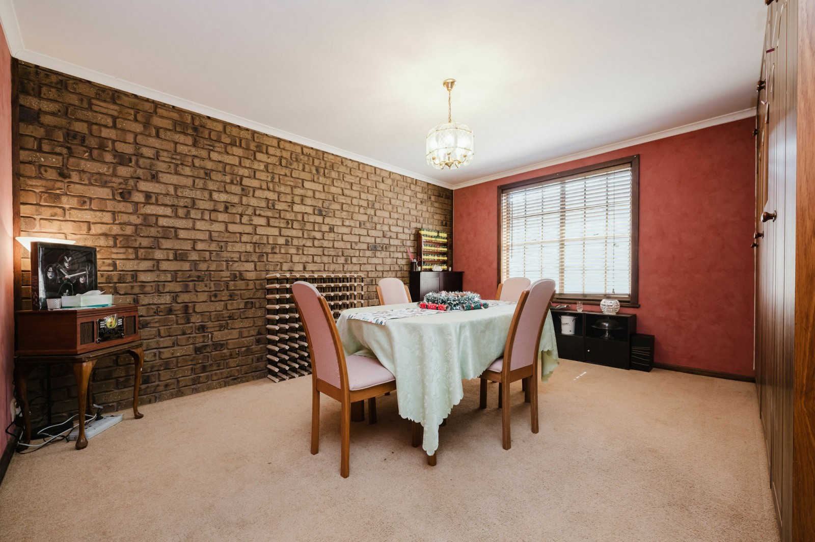 Solid timber eat-in kitchen offering plenty of bench and cupboard space plus large windows overlooking the backyard. Formal dining area located adjacent to the kitchen, with featured brick wall. Lounge room comforted by reverse cycle air conditioner and heater.