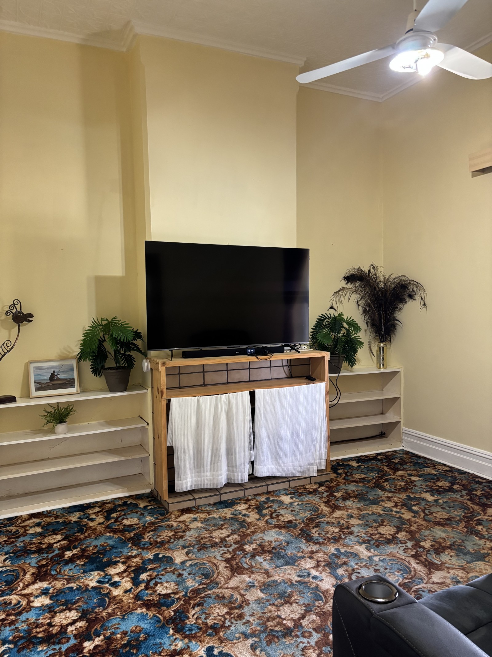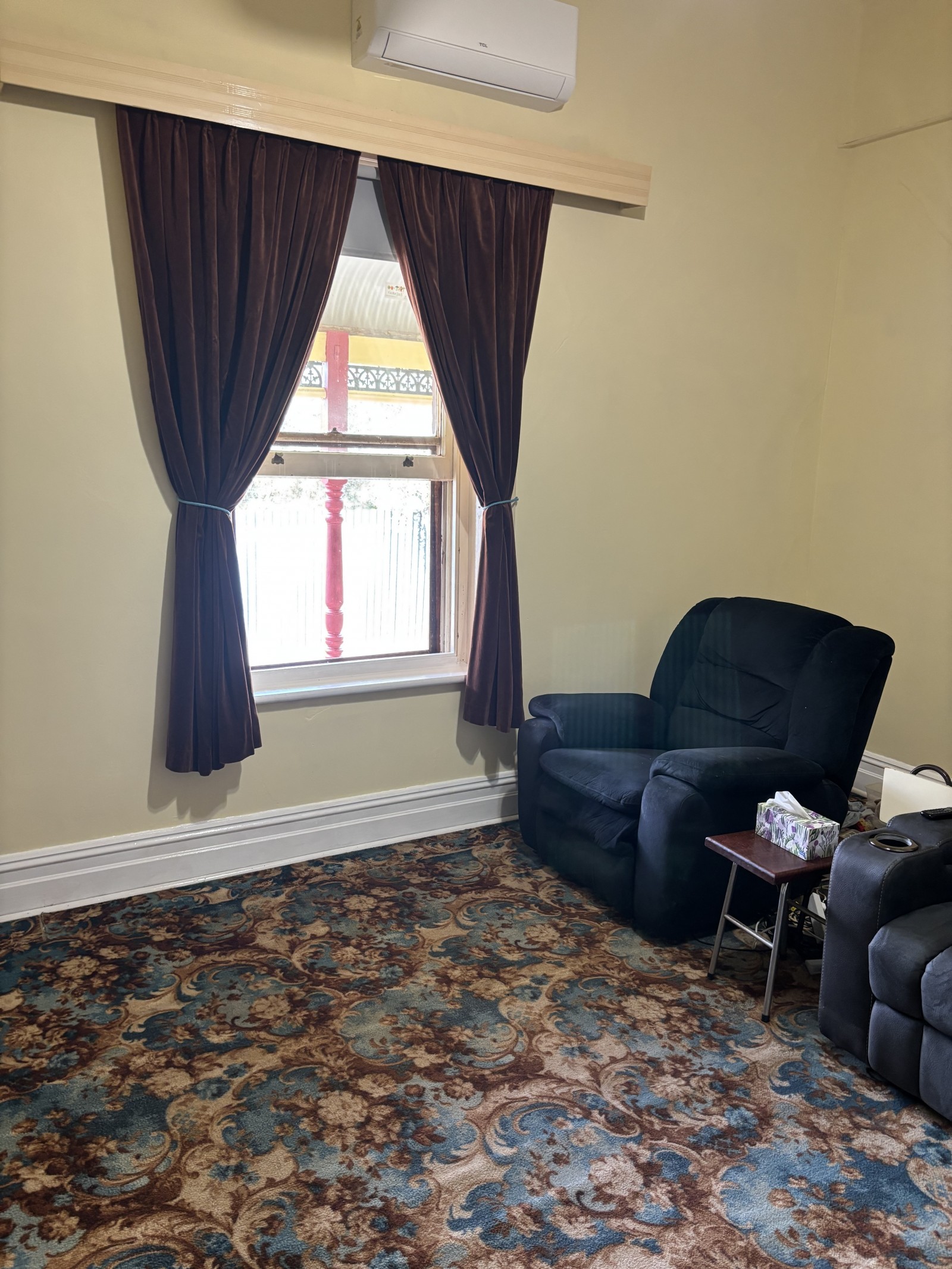 The residence comprises four generous double bedrooms, all equipped with ceiling fans, while select rooms also feature original open fireplaces. A comfortable lounge provides a welcoming space to relax, complete with a reverse-cycle split system for year-round climate control.