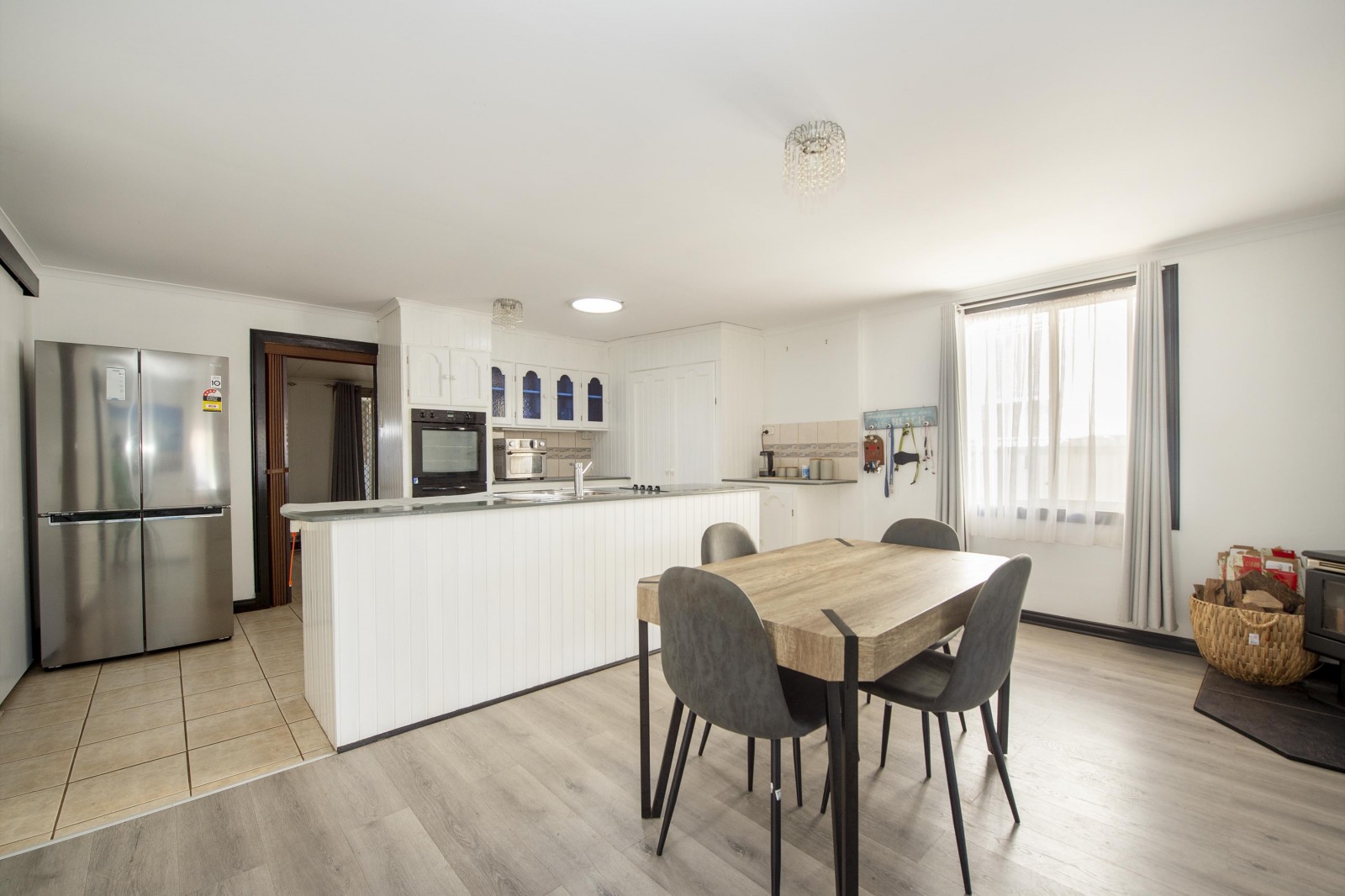 The kitchen provides ample storage and bench space, including overhead cupboards, a corner pantry, electric stove and dishwasher, making everyday living and entertaining easy.
