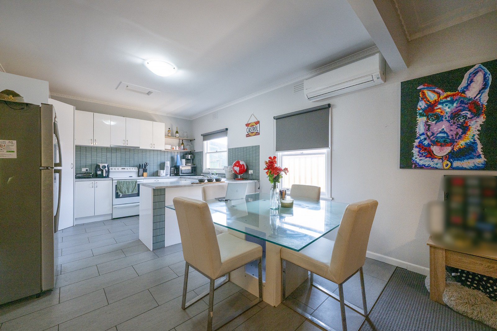 The heart of the home is the light-filled open-plan dining, lounge, and kitchen area, creating a welcoming space for everyday living and entertaining. Comfort is ensured year round with split system heating and cooling, evaporative cooling and electric roller shutters. The kitchen offers electric cooking facilities, a dishwasher, and flows seamlessly into the living areas, making it easy to stay connected with family and guests.