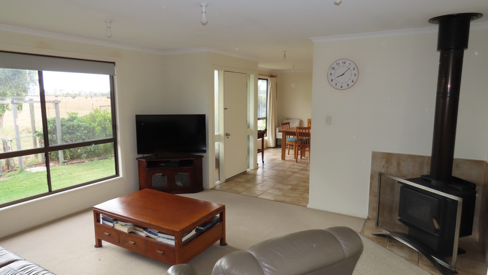 The timber framed 3 Bedroom dwelling features open kitchen dining area with Electric oven, walk in pantry, reverse cycle air conditioning this opens to the bright lounge area with views over the front paddocks and onto the rear verandah, it has a slow combustion heater for cosy warmth, the bathroom is well appointed with a bath and shower and there is a separate toilet. Two of the bedrooms feature built in robes.Ample rainwater is available to the house and the attractive gardens are watered from the bore.